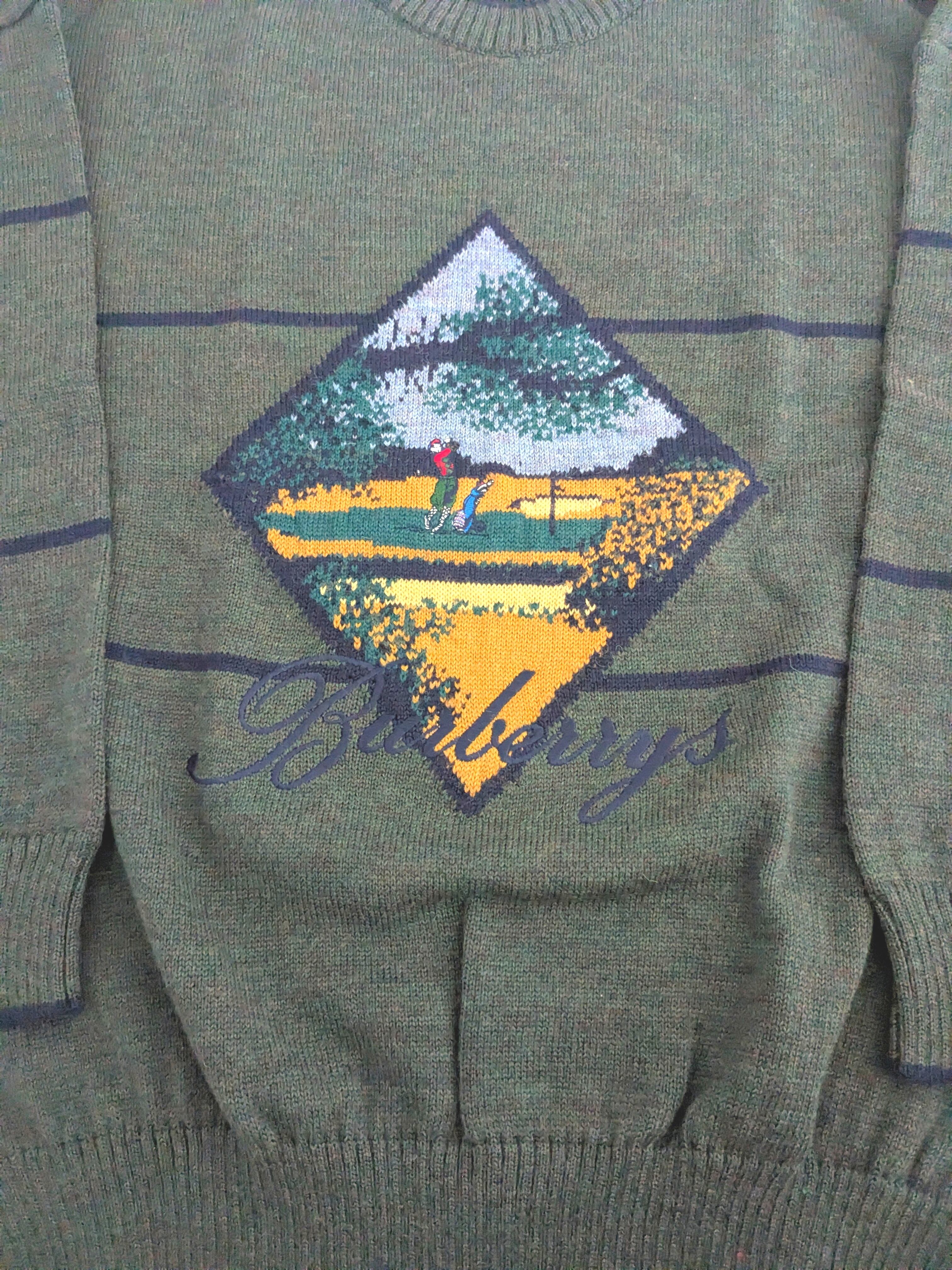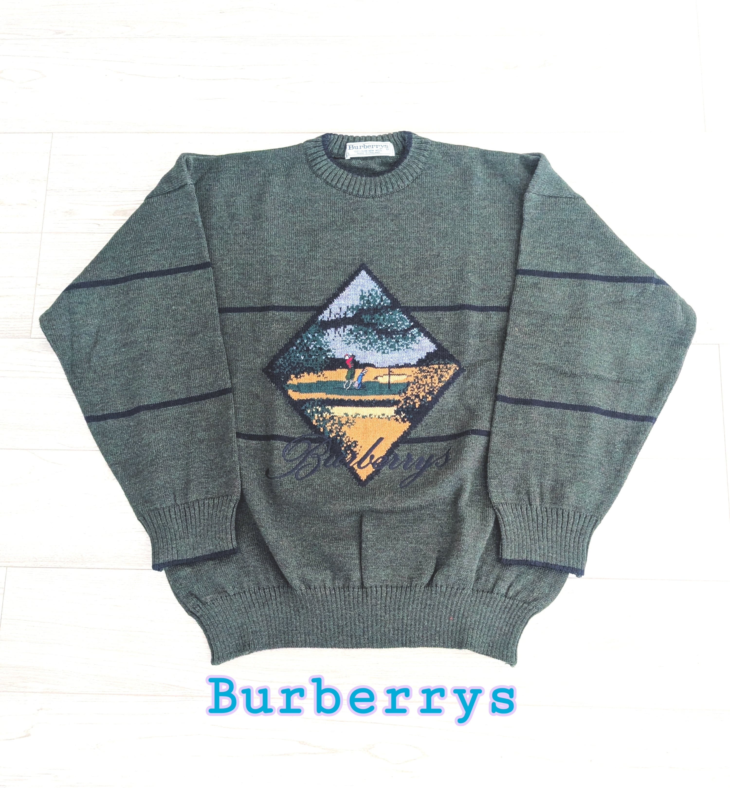 未使用 Burberrys バーバリー メンズ L サイズ グリーンカラー ゴルフセーター 90s