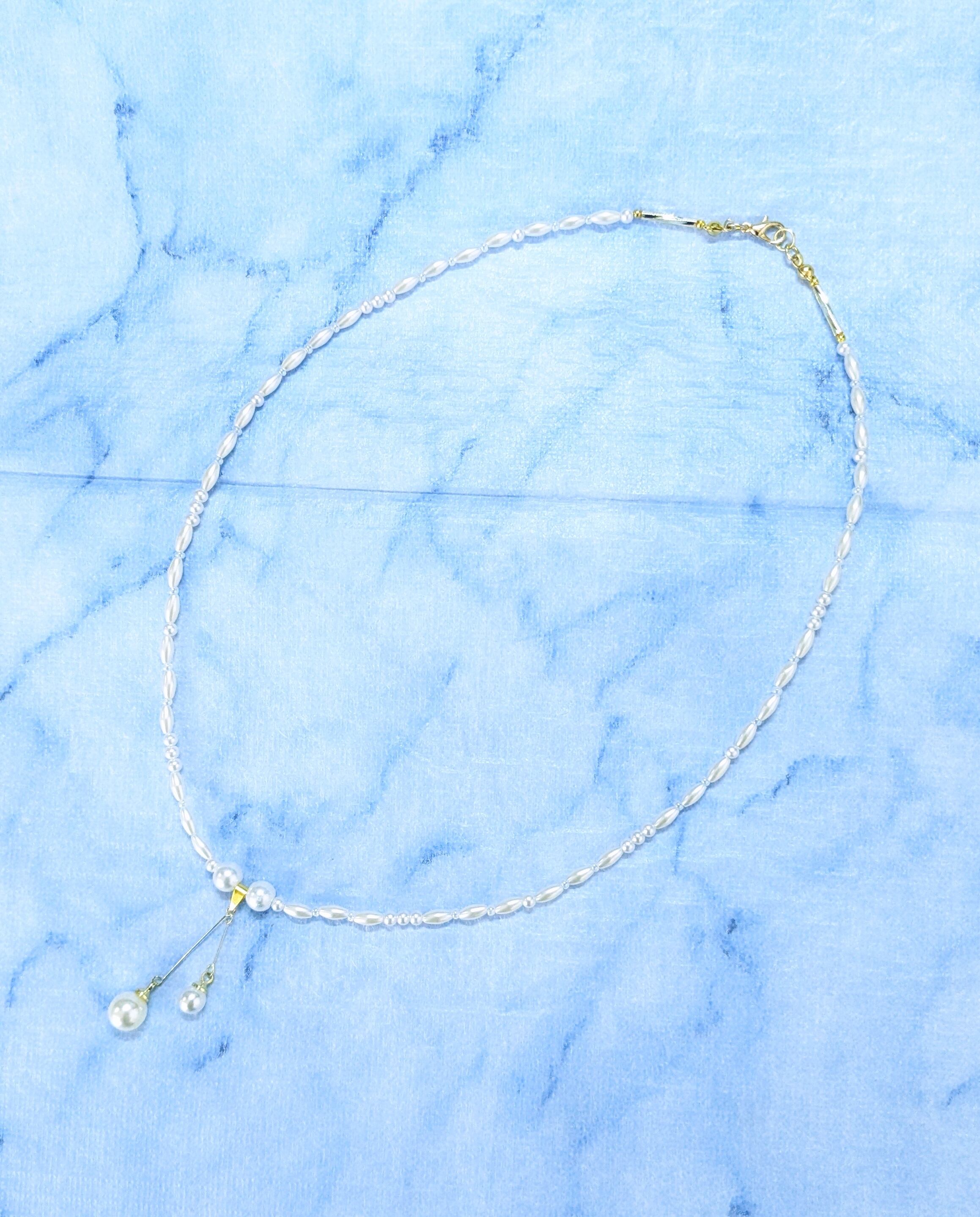 レディースネックレス 2連ホワイトパール & ホワイトパールビーズゴールド L-881