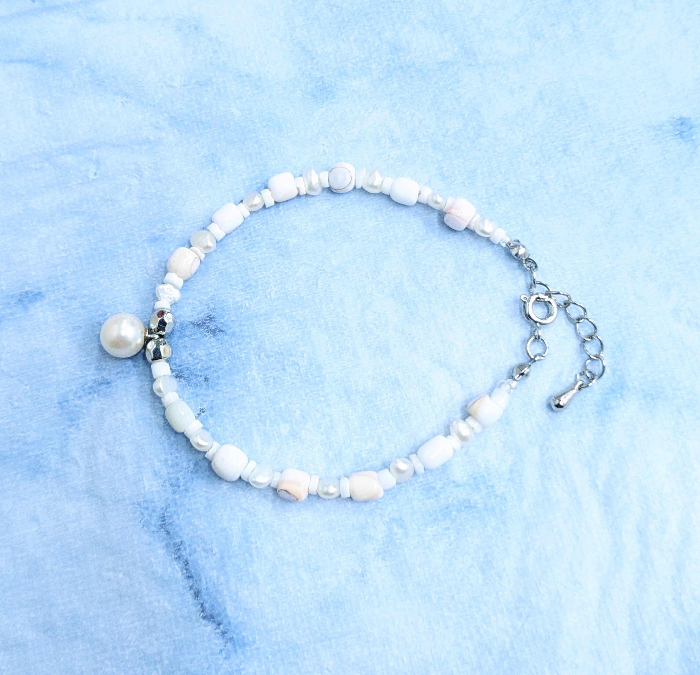 ハワイアンデザインブレス ホワイトパール & ナチュラルシェルビーズ R-440