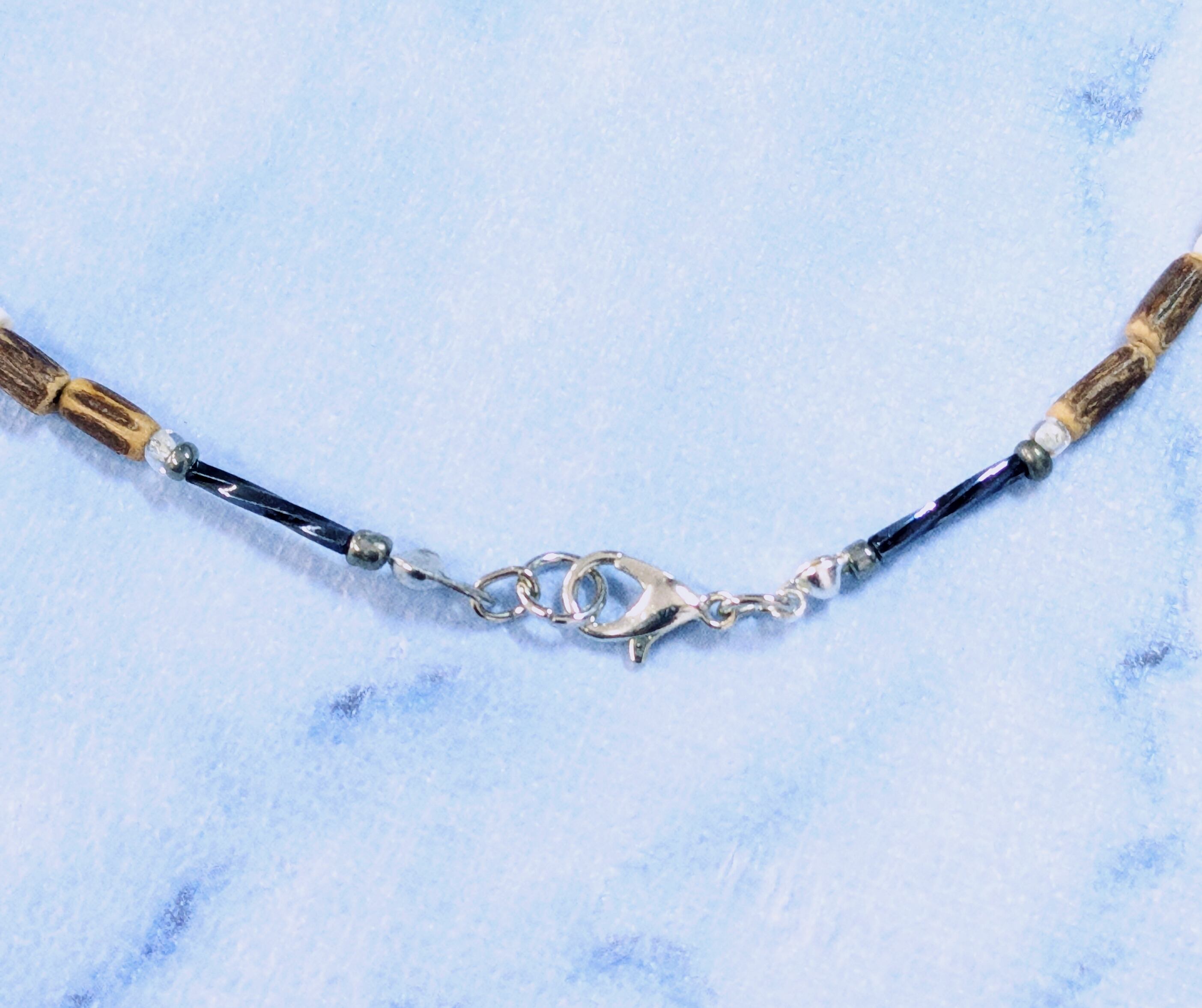 ハワイアンネックレス ホワイトボーンゲッコー ヤモリ & ウッドライン Y-814