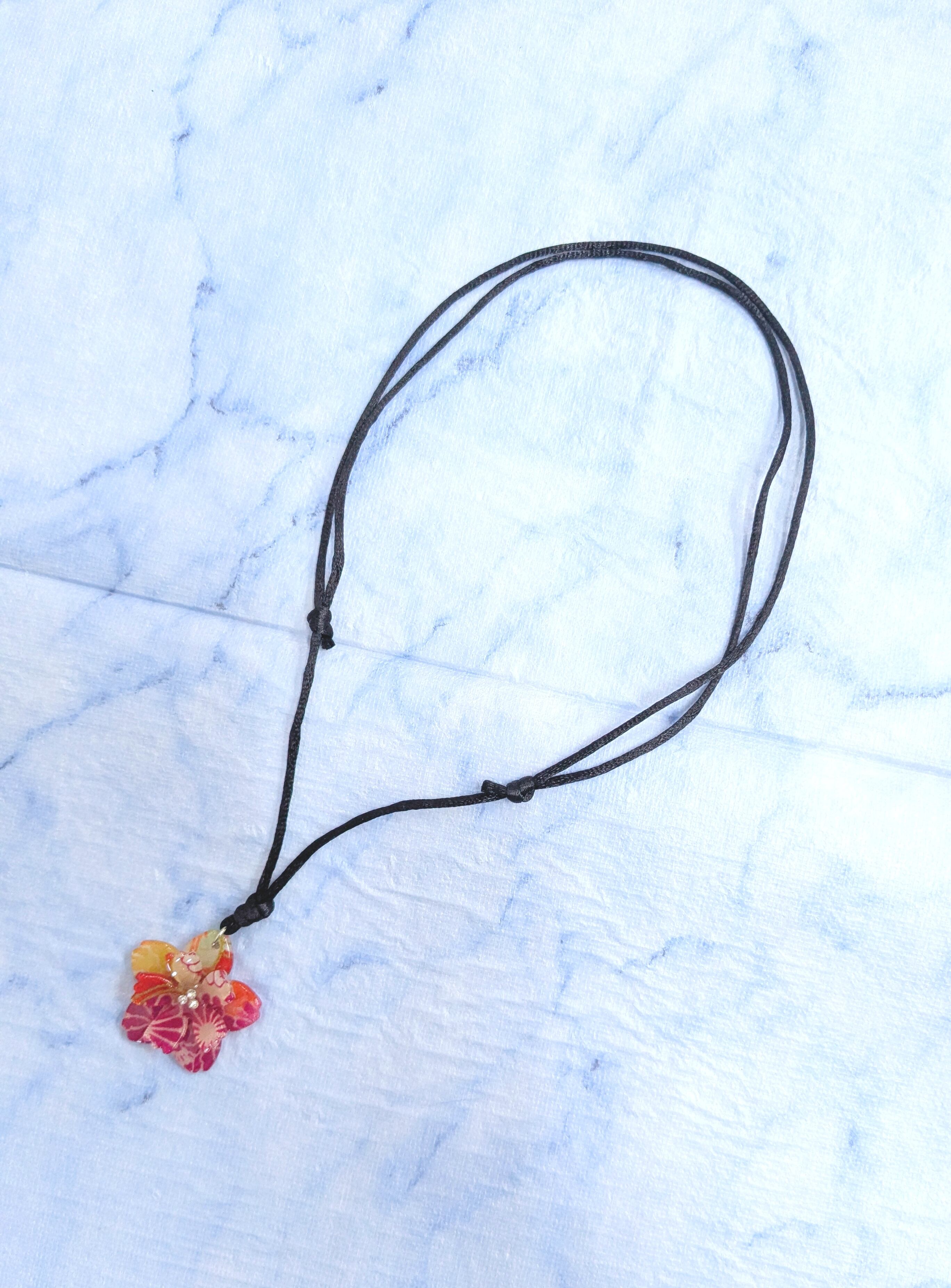 レディースネックレス レッドグラデーション 和柄さくらデザイン L-882