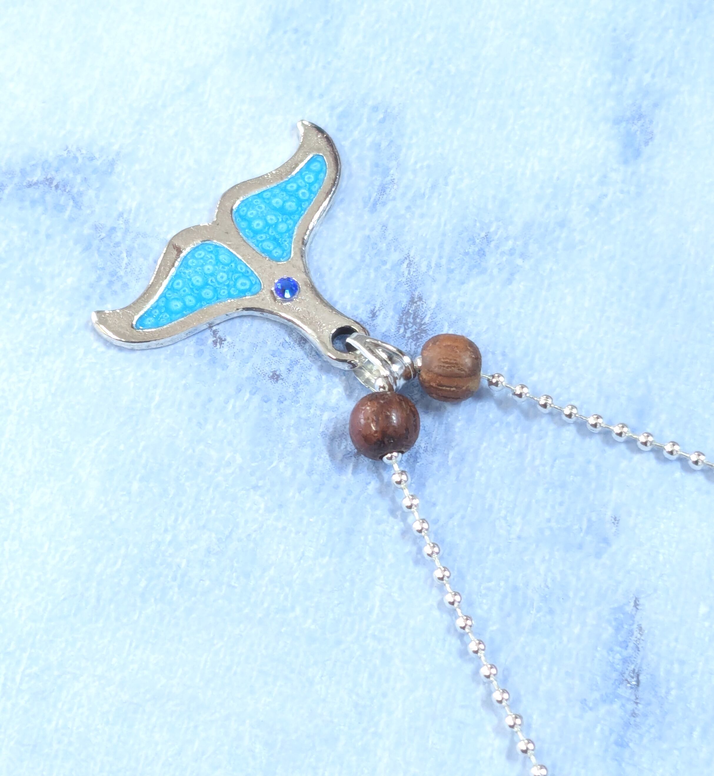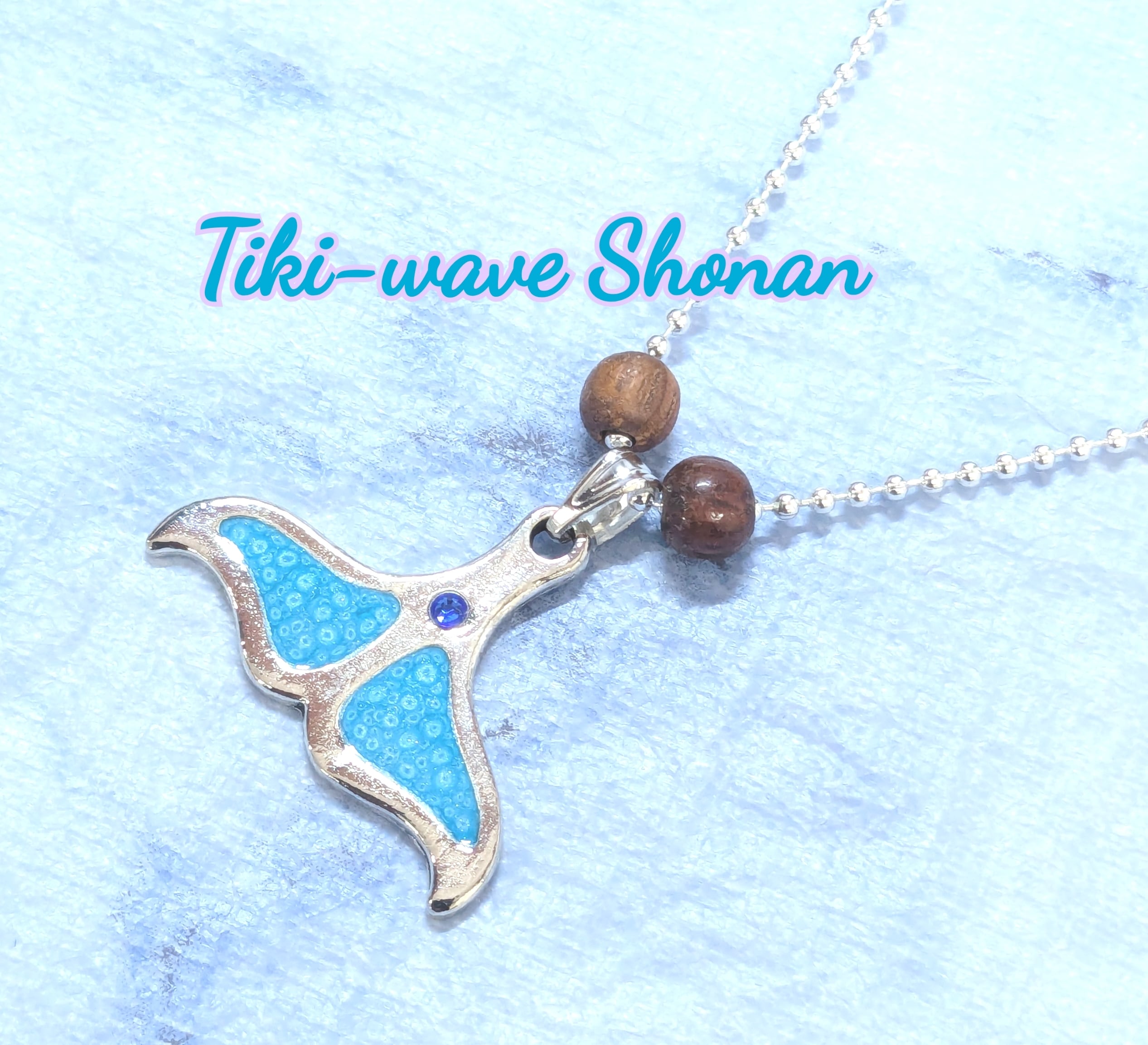 ハワイアンネックレス ライトブルー&シルバーカラー ホエールテール W-904