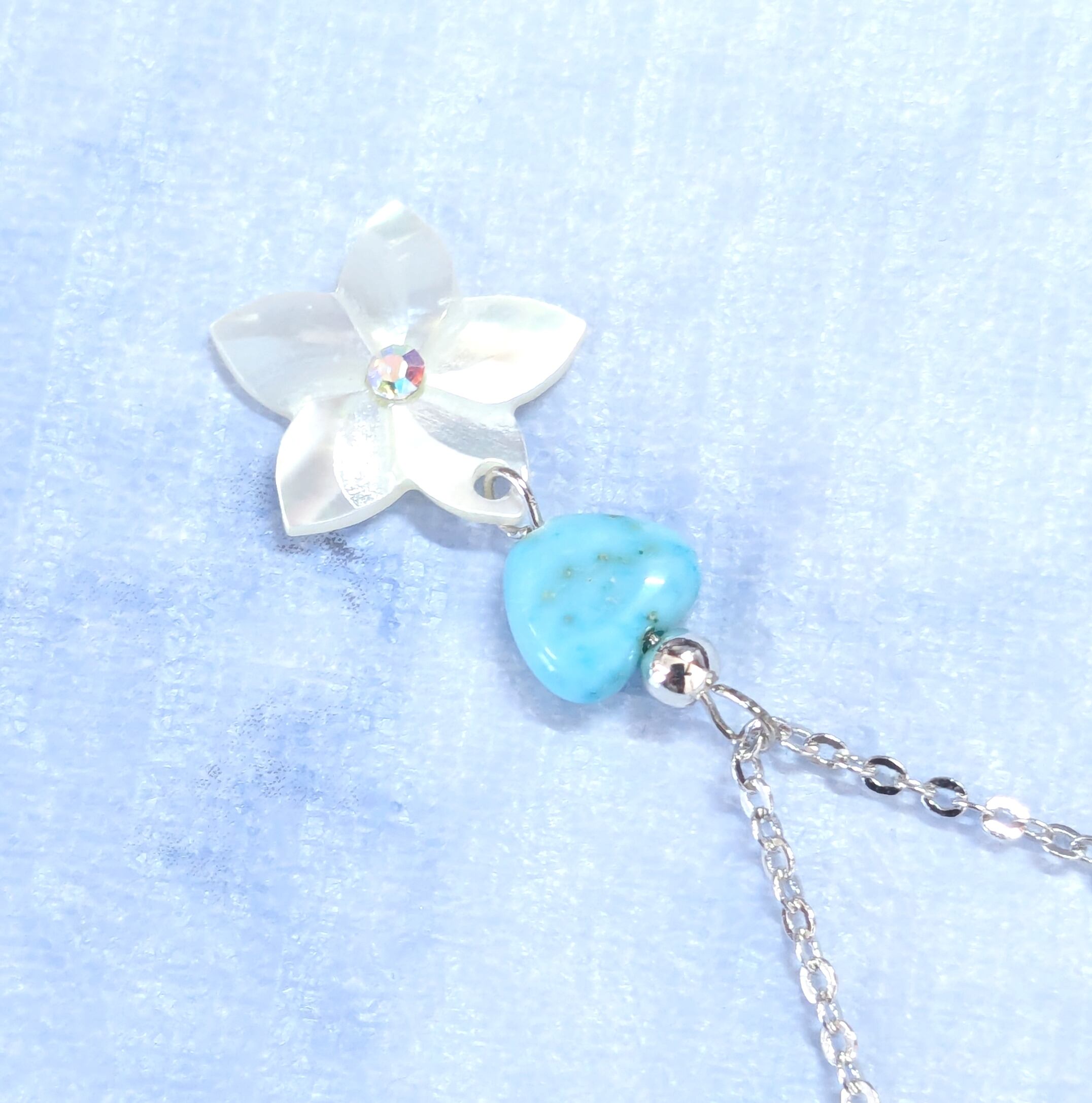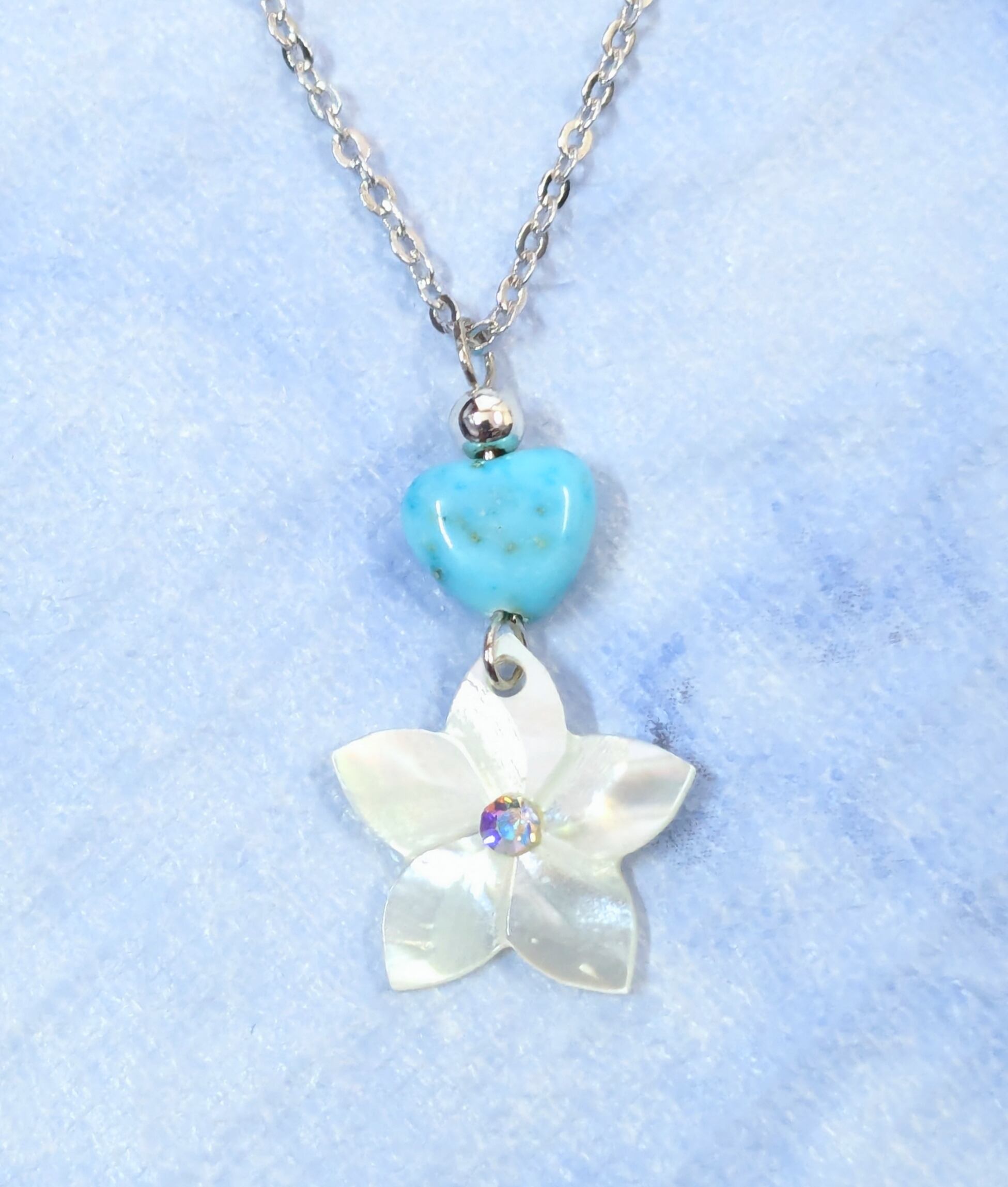 ハワイアンネックレス ホワイトシェルプルメリア & ハートターコイズ P-714