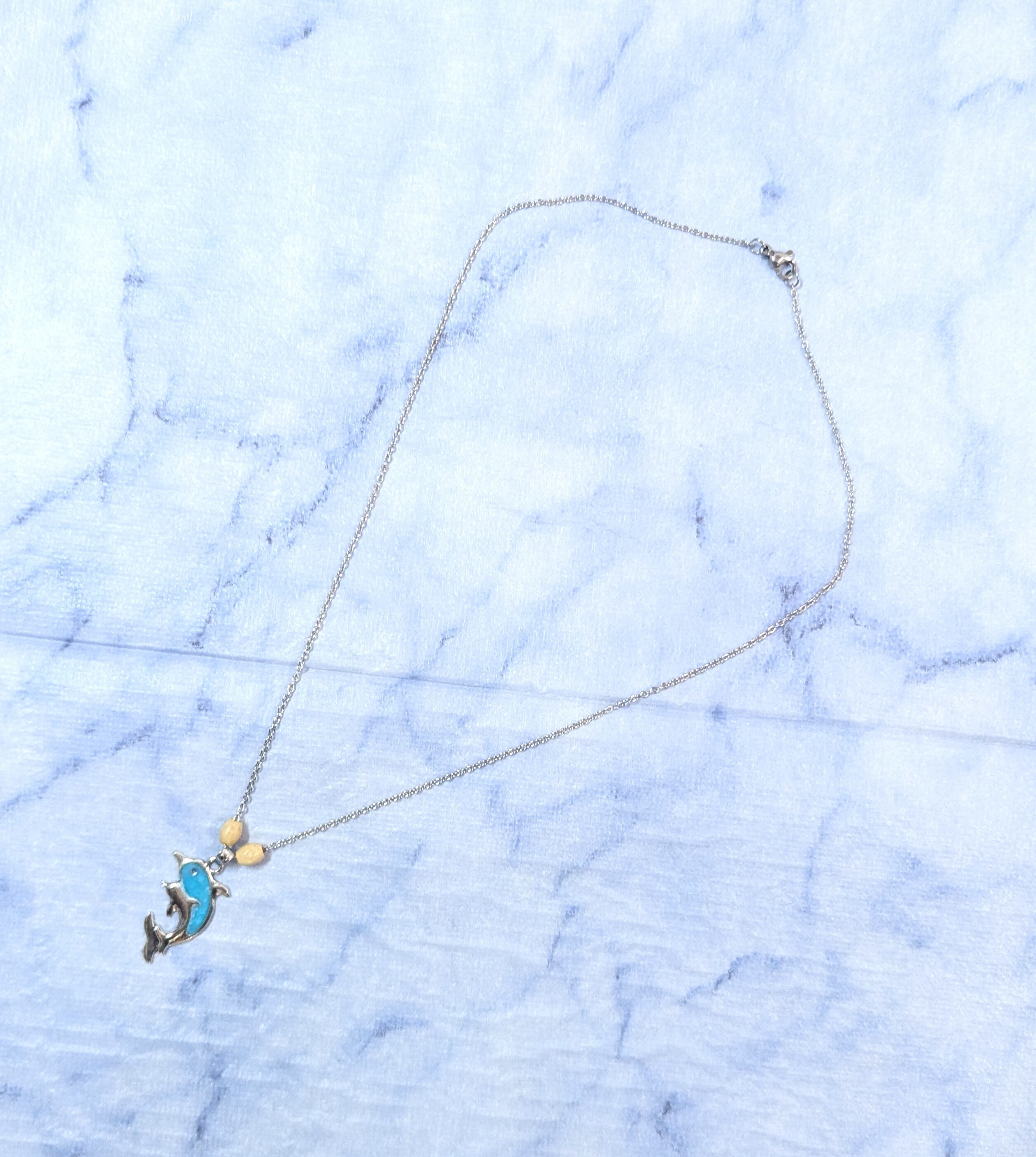 ハワイアンネックレス シルバー&ライトブルーカラー ツインドルフィン D-251
