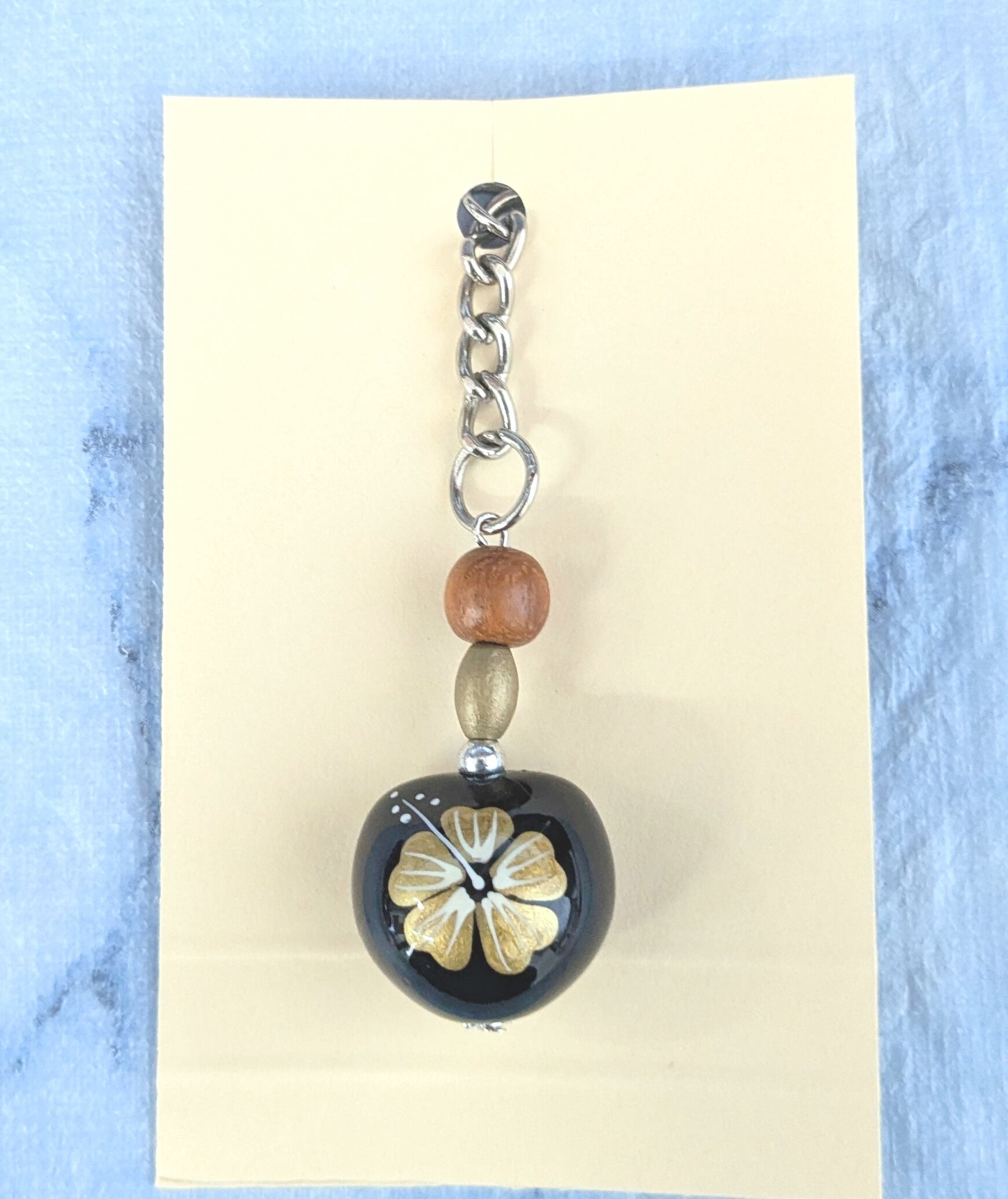 HAWAII キーホルダー ククイの実 ブラック & ゴールドハイビスカス S-220