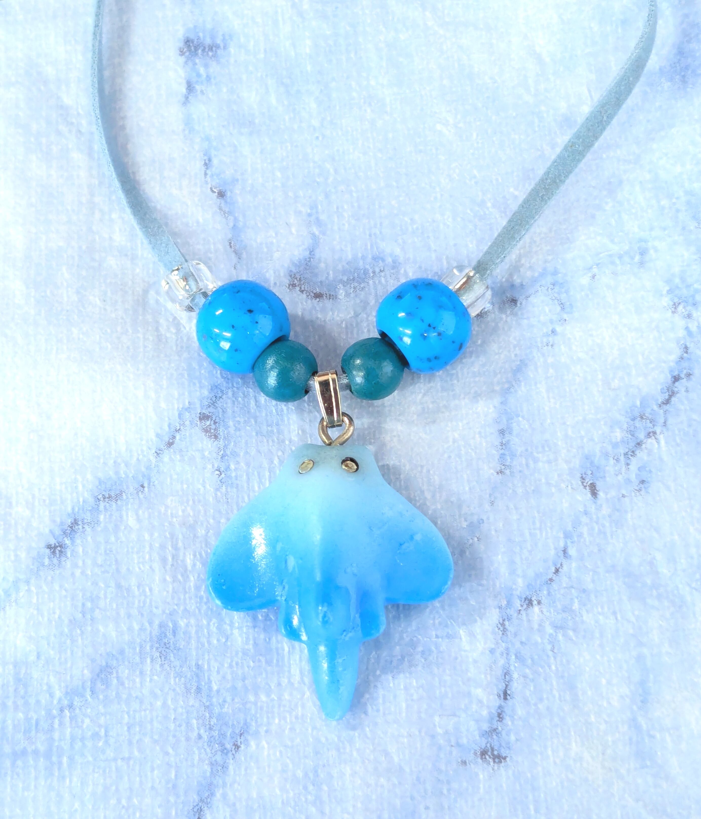 ハワイアンネックレス ブルーカラー マンタ エイ デザイン スエード紐 L-631