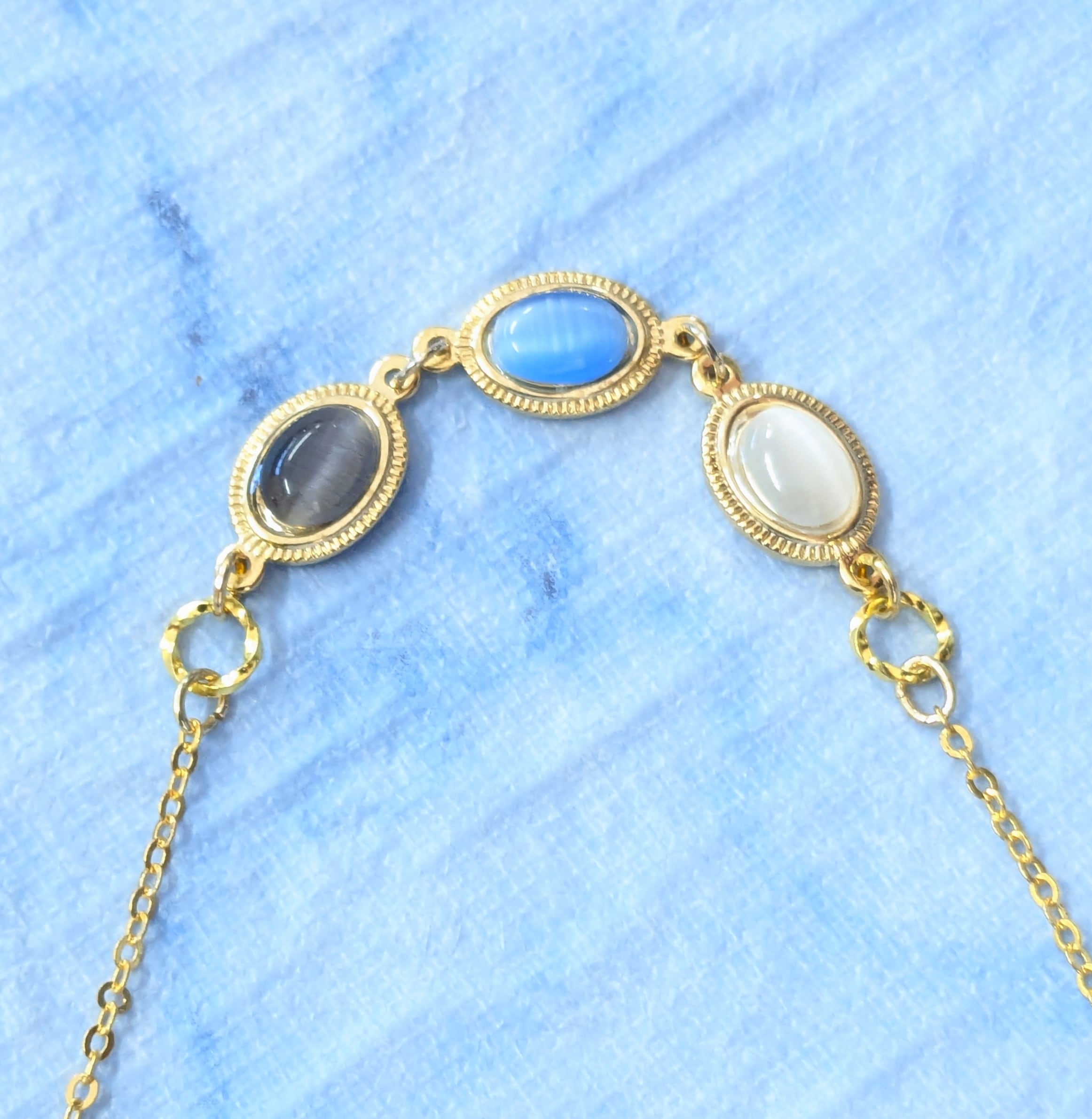 レディースネックレス 3連ゴールドカラーオーバル 3カラーキャッツアイ L-883