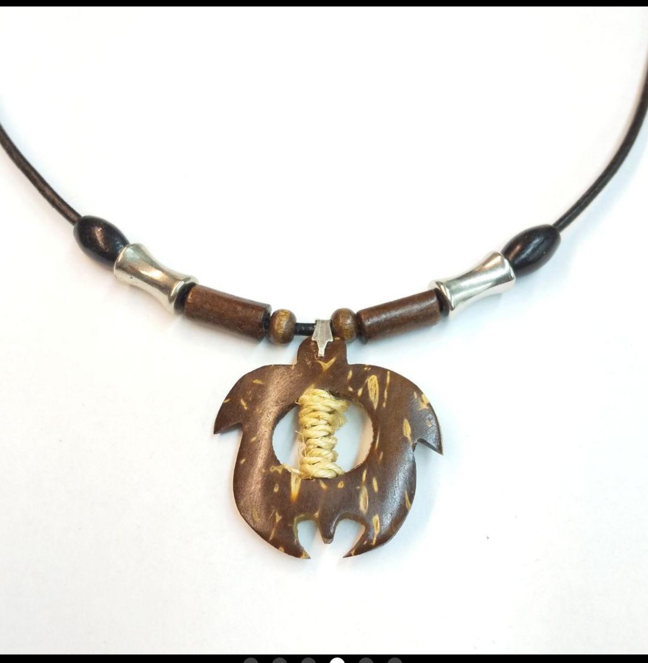 ハワイアンネックレス 天然椰子ウッド ホヌ 海亀 本革紐 U-298