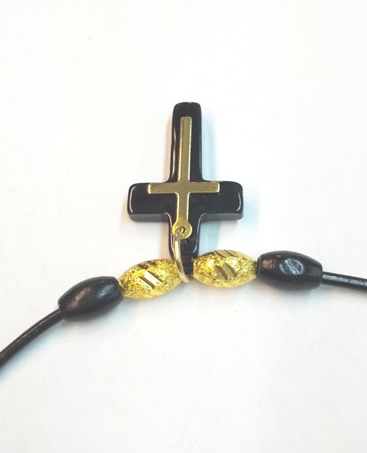 メンズネックレス ゴールド&ブラック Wクロス 本革紐 U-503