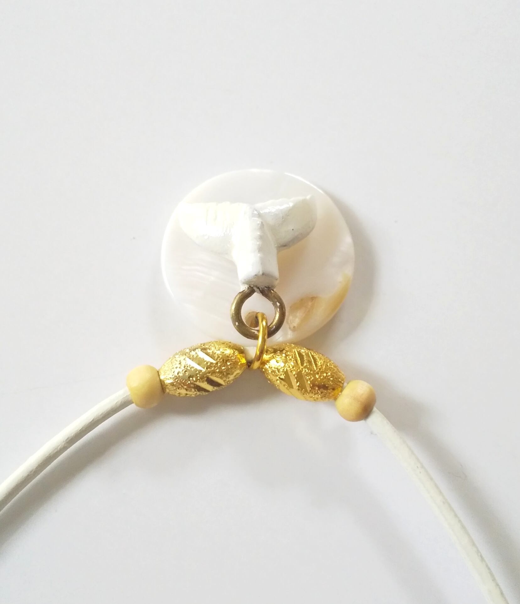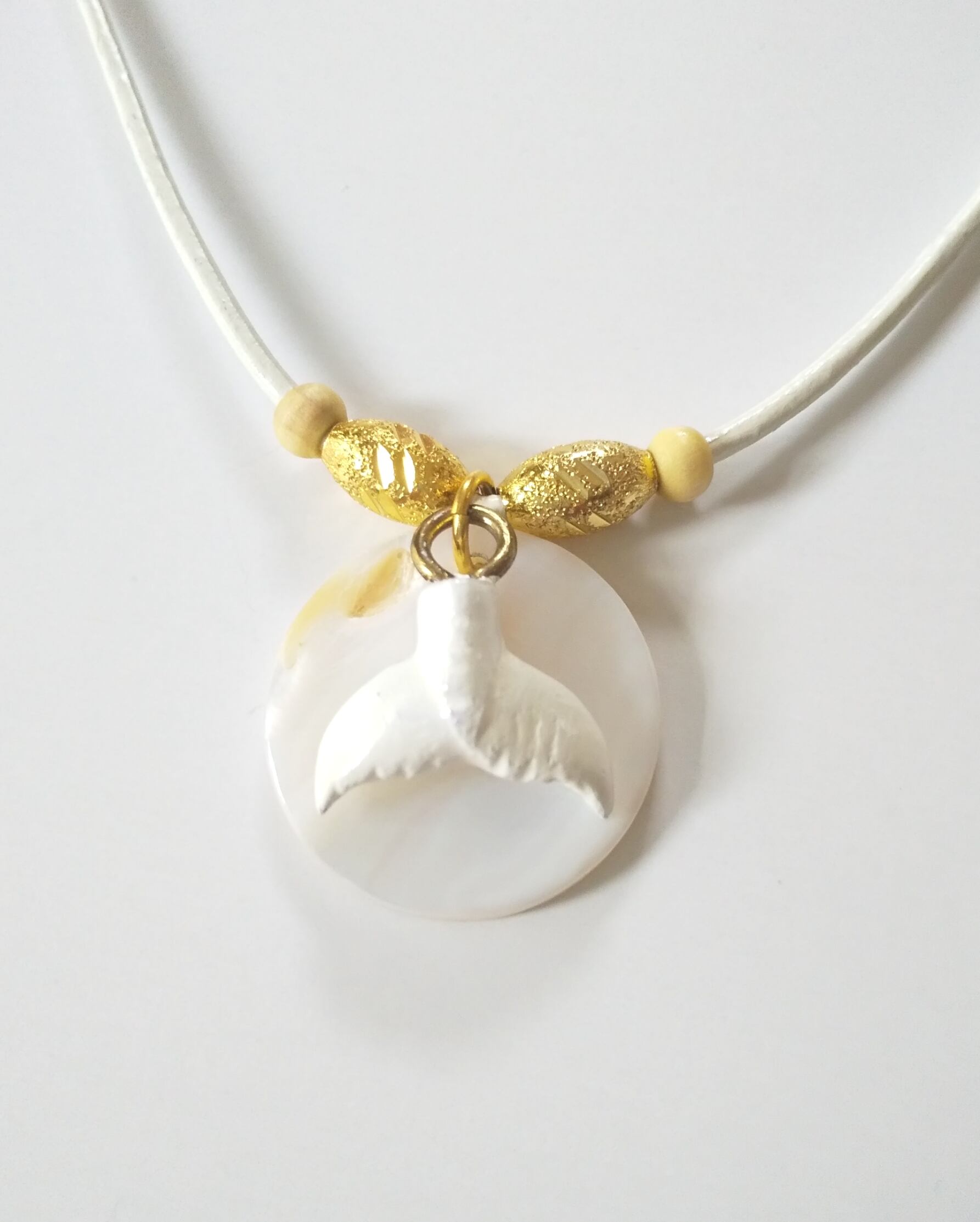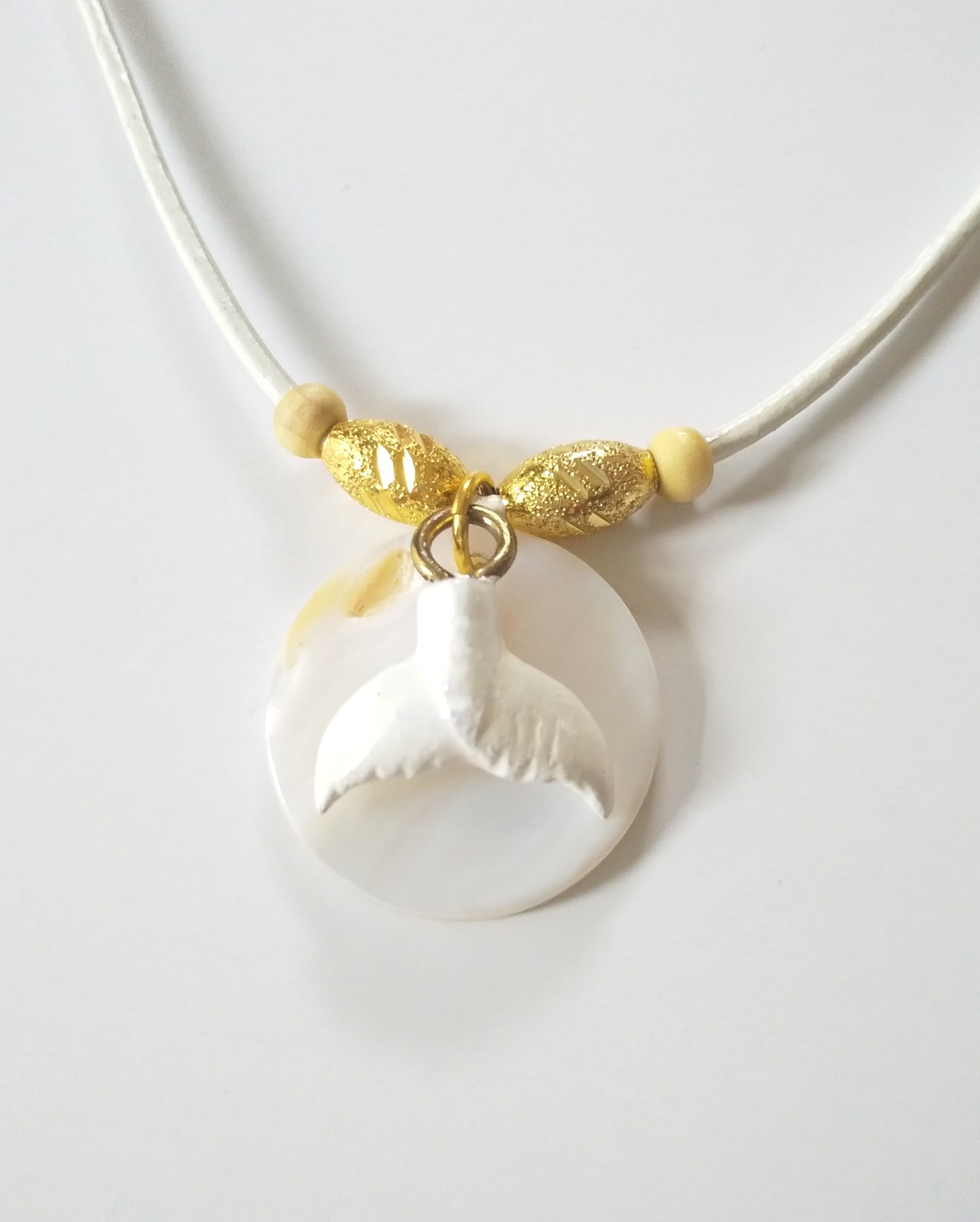 ハワイアンネックレス 天然シェル&ホエールテール 本革紐 U-335