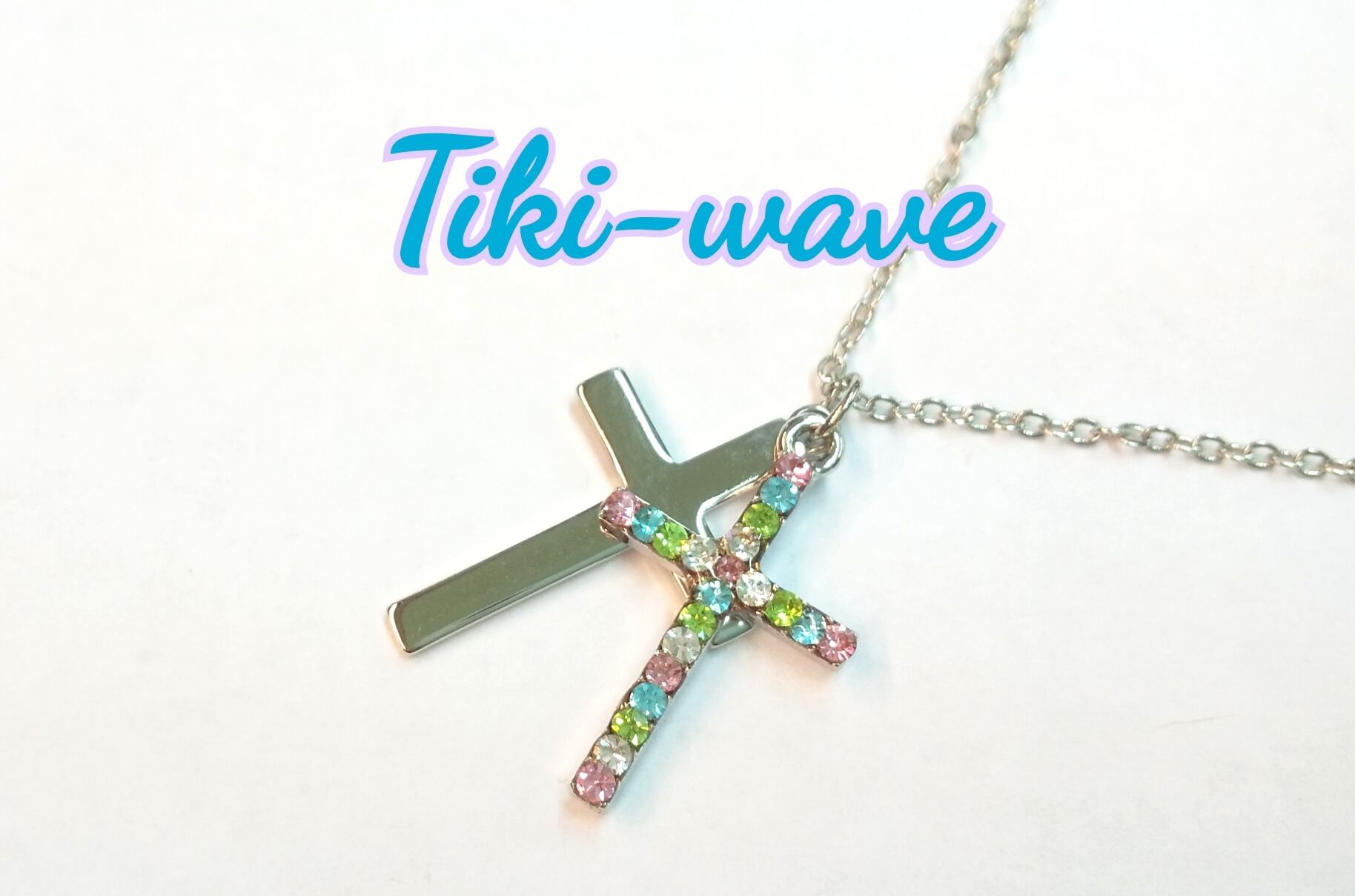 レディースネックレス 4カラーCZ&シルバー 2連クロス U-610
