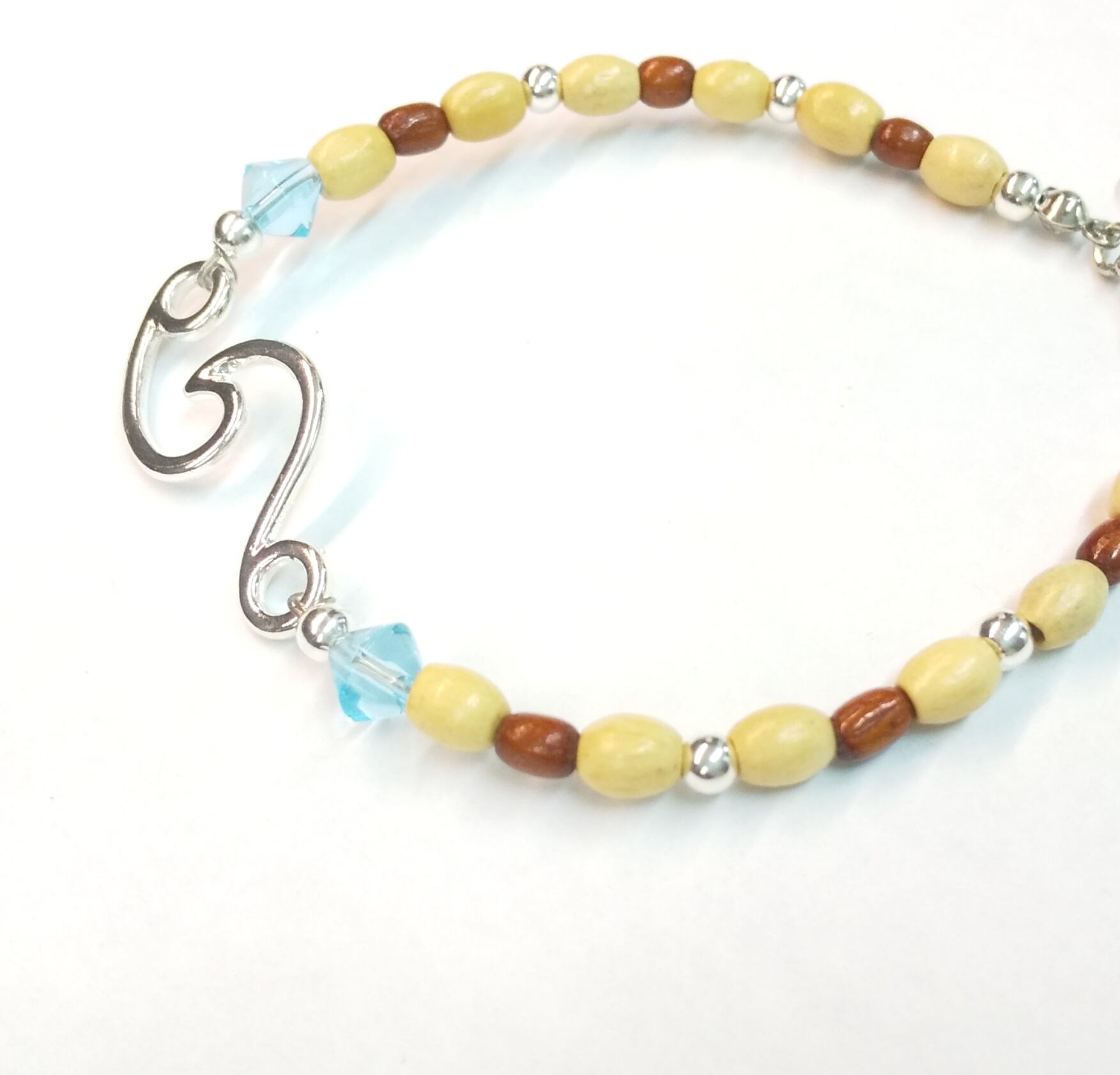 ハワイアンブレス シルバーカラー ウェーブ& 天然ウッドビーズ M-223