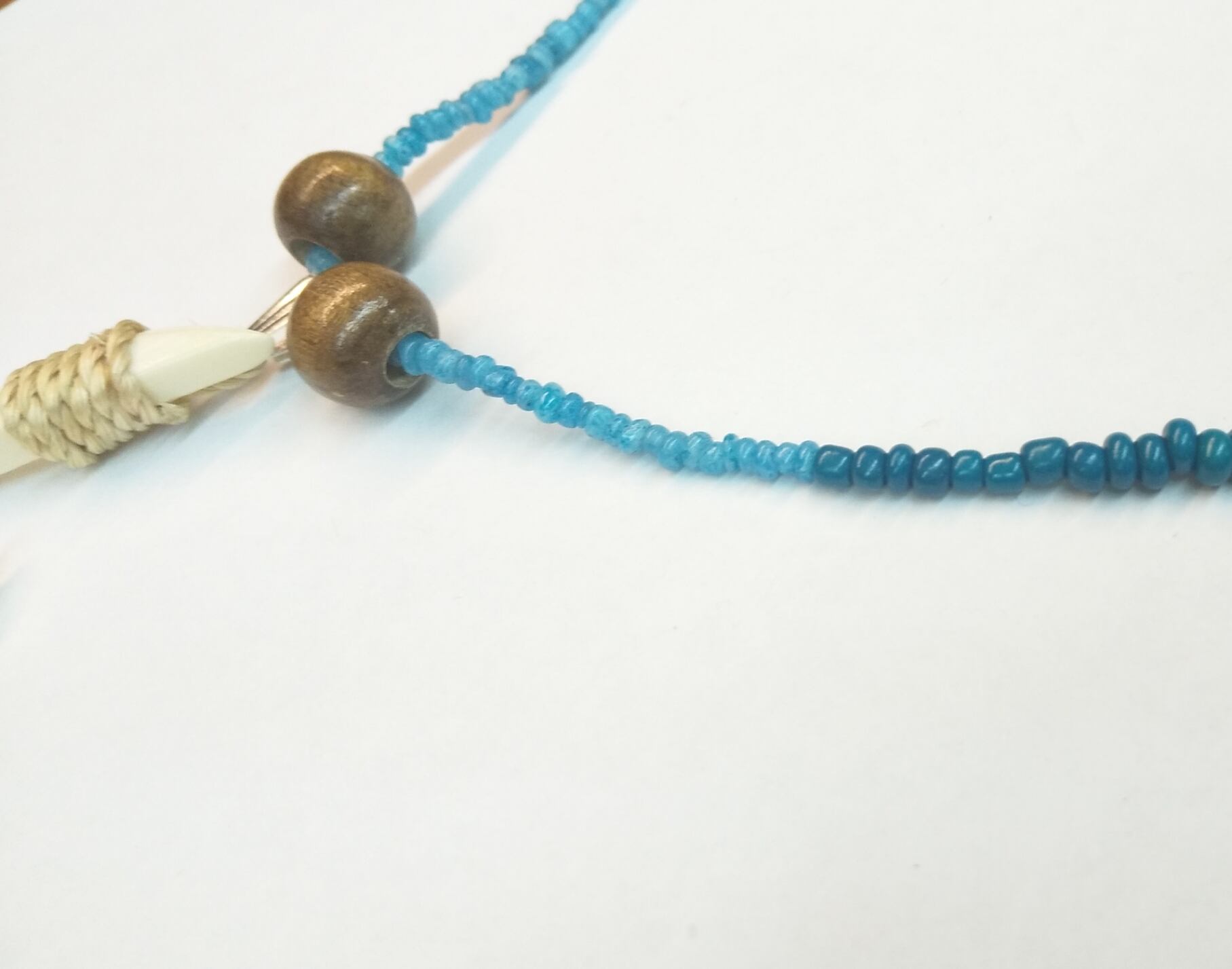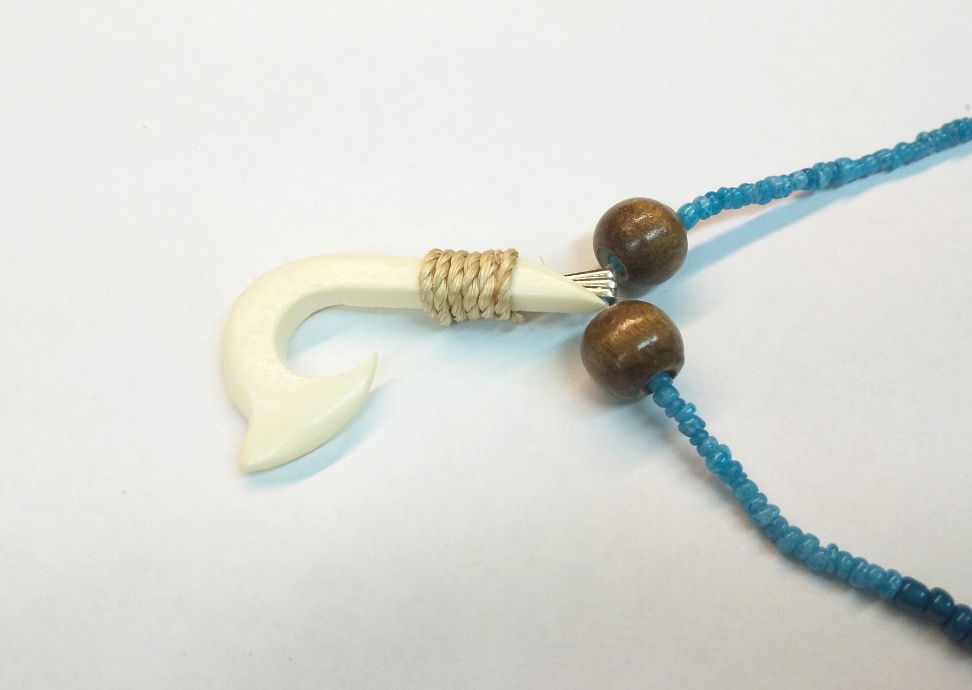 ハワイアンネックレス ホワイトボーン フィッシュフック&ブルービーズ U-342