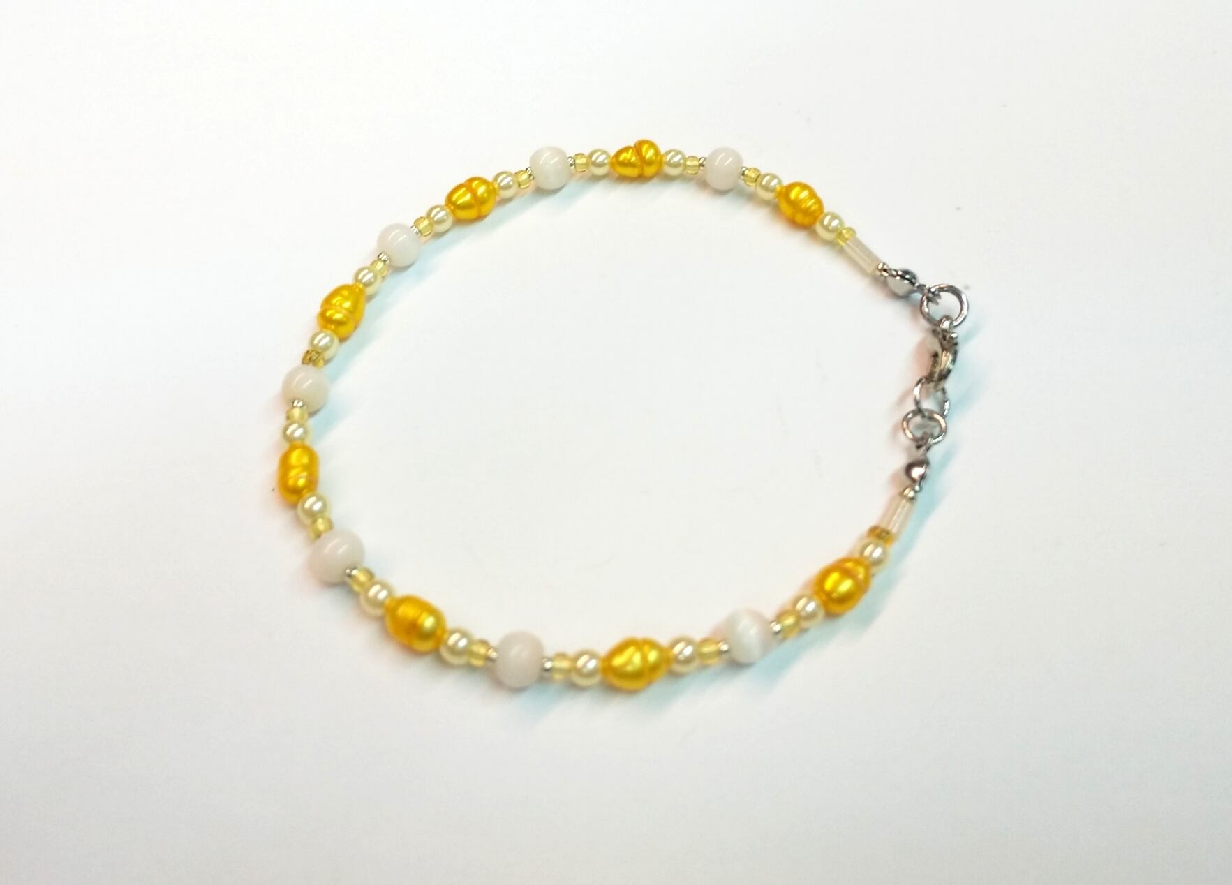 ハワイアンブレス イエローカラー淡水パール& ホワイトシェル M-227