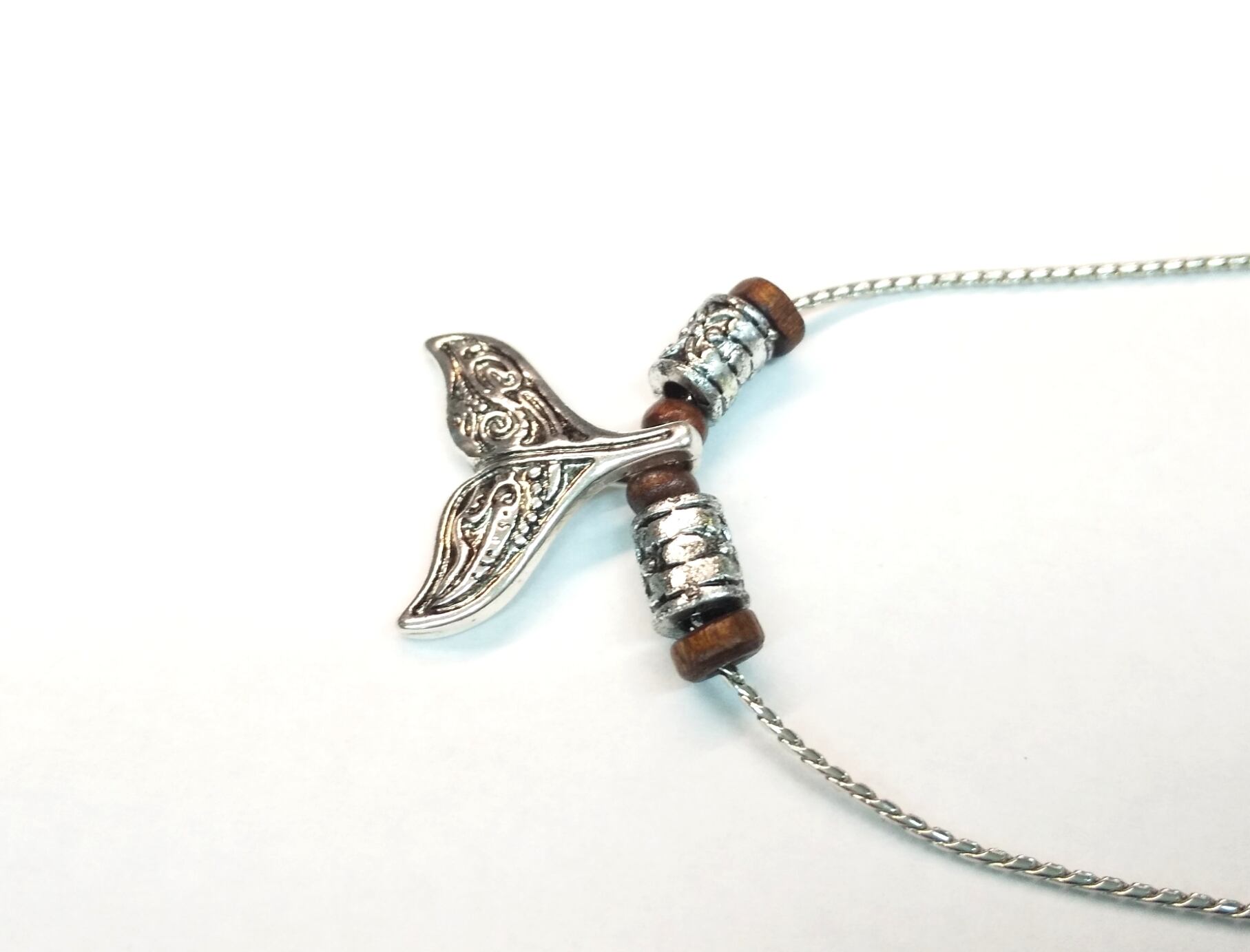 ハワイアンネックレス シルバーカラー カービング ホエールテール U-345