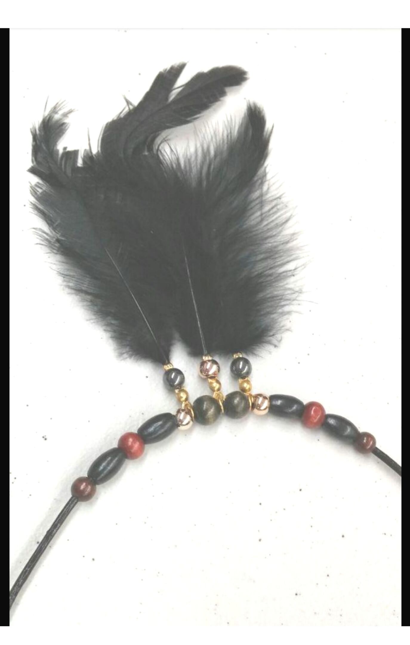 レディースネックレス ナチュラル3連ブラックフェザー 本革紐 Y-516