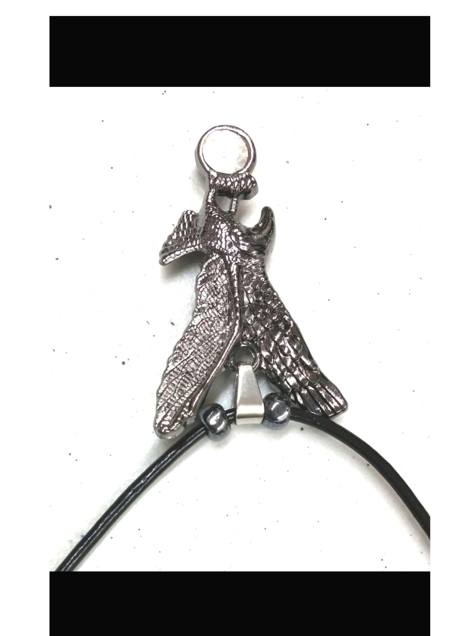 メンズネックレス ブラックニッケルイーグル& CZ 本革紐 Y-406