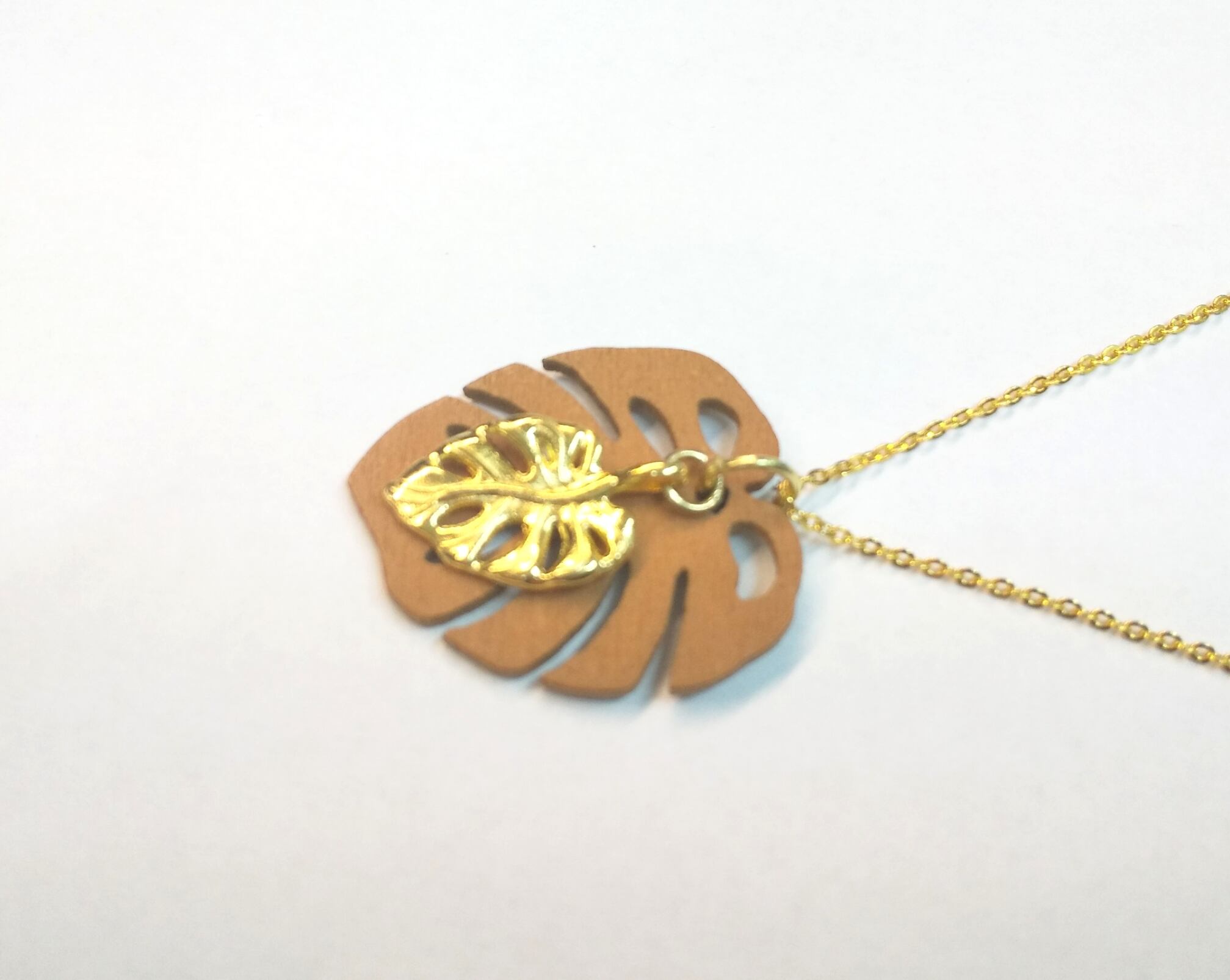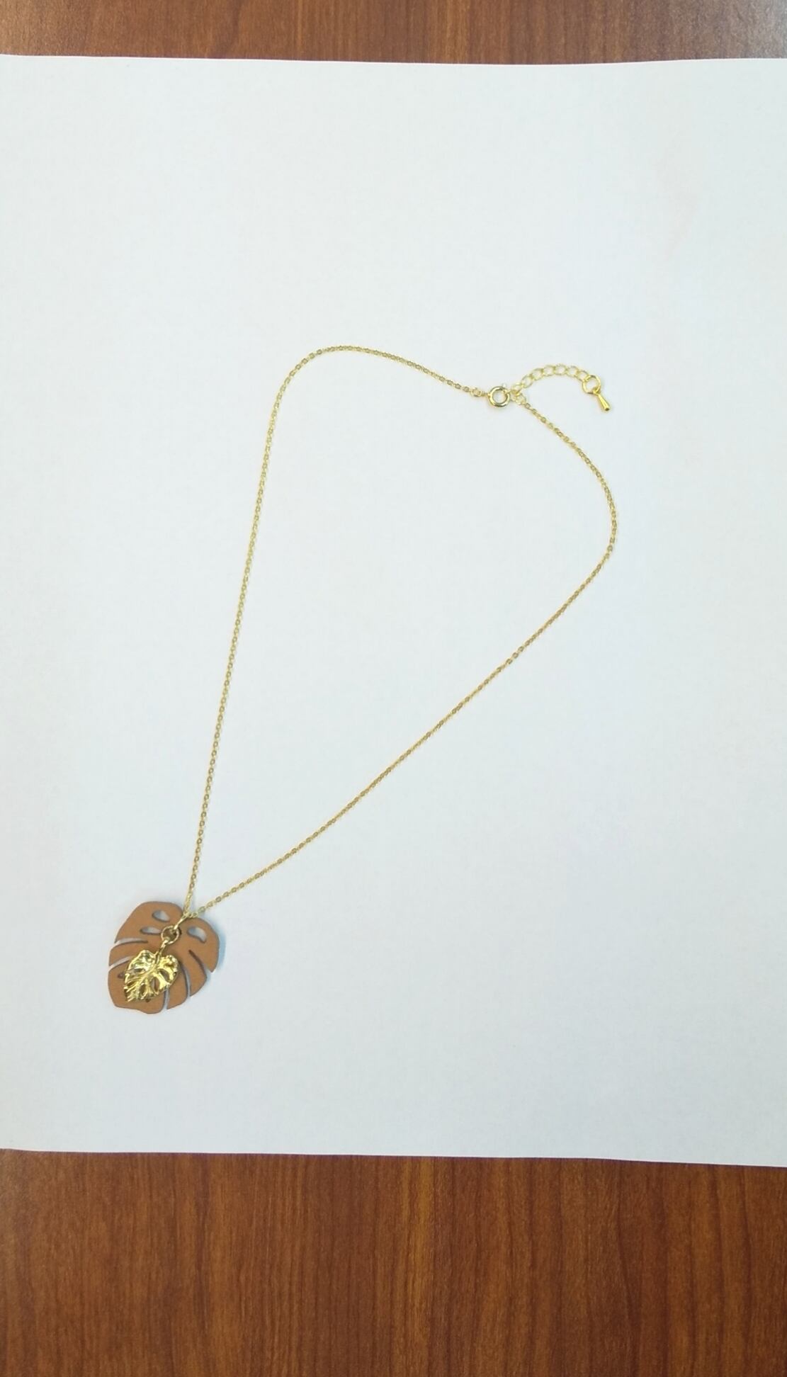 ハワイアンネックレス ゴールド&ウッド 2連モンステラ U-348