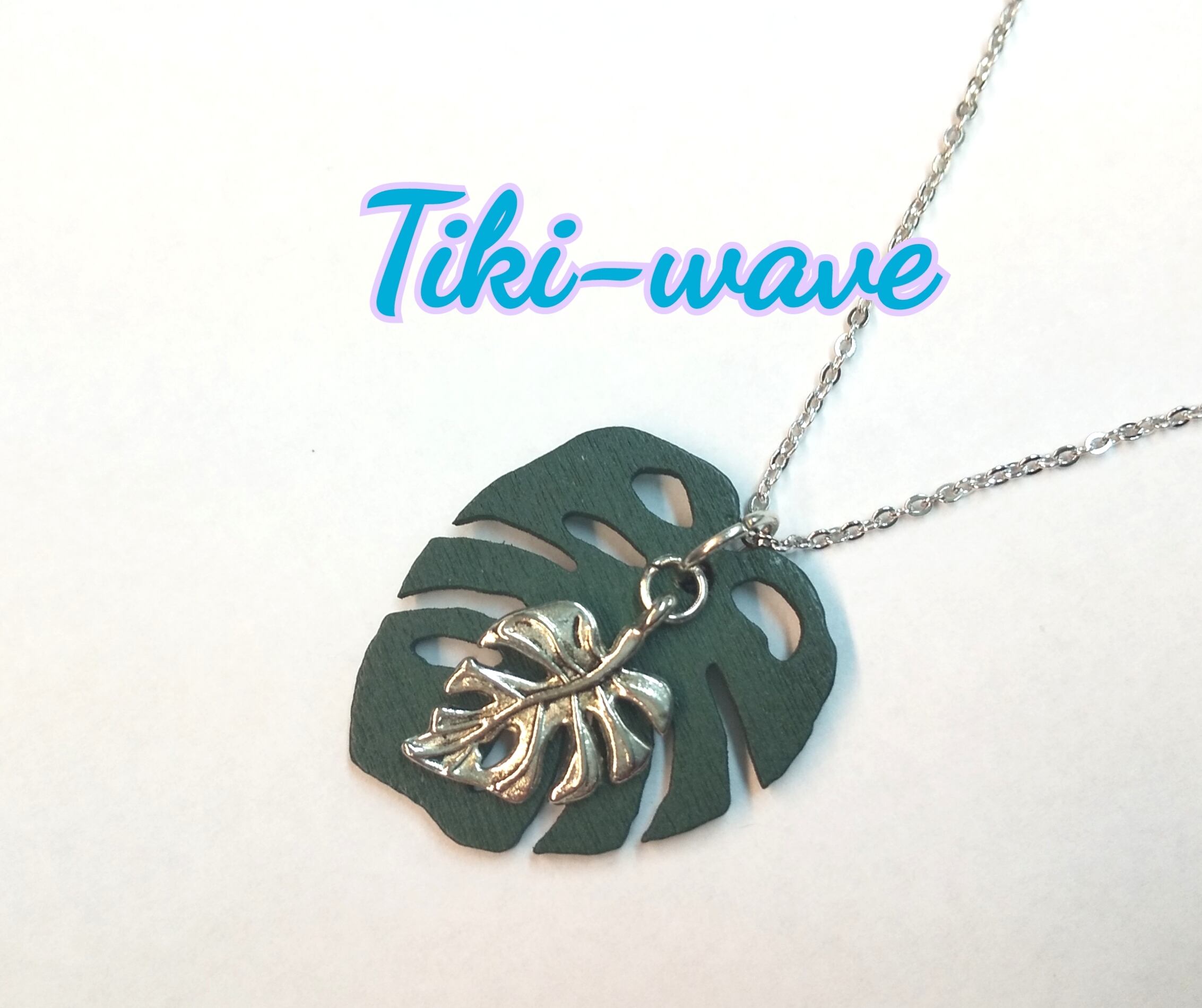 ハワイアンネックレス シルバー&ウッド 2連モンステラ U-349