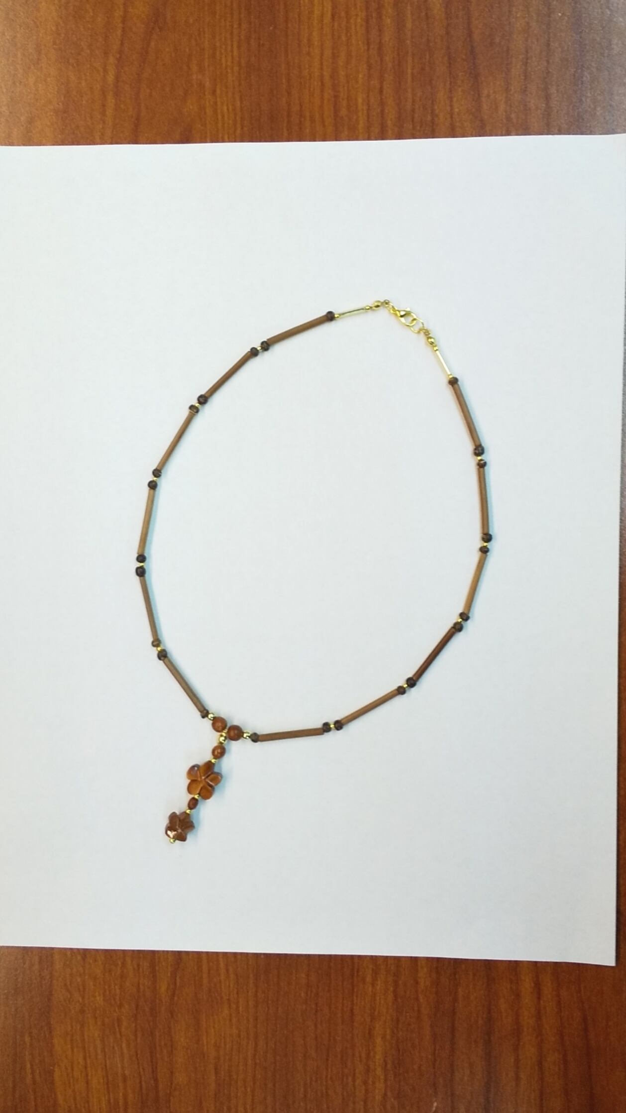 ハワイアンネックレス 天然ウッド2連プルメリア& バンブーライン U-353