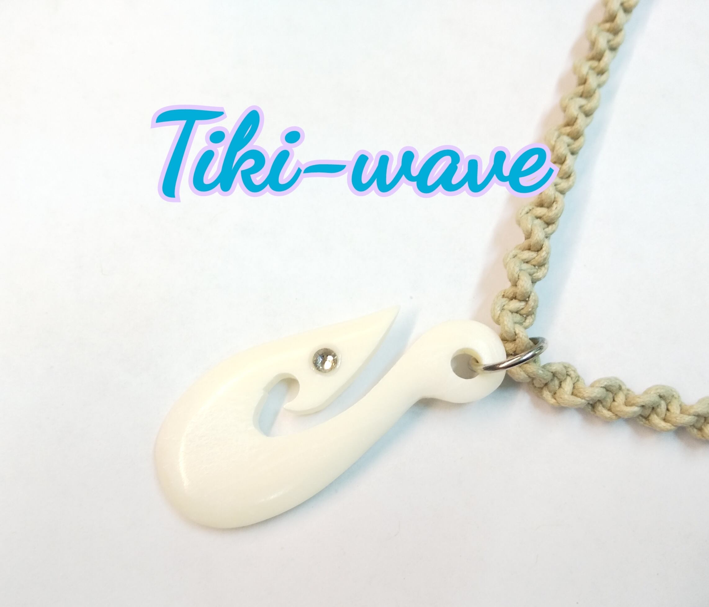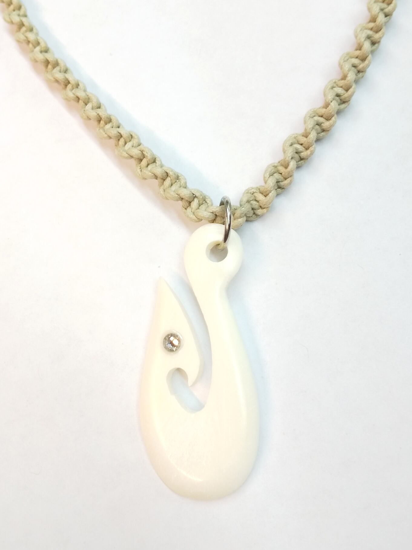ハワイアンネックレス ホワイトボーン フィッシュフック&麻紐 U-355