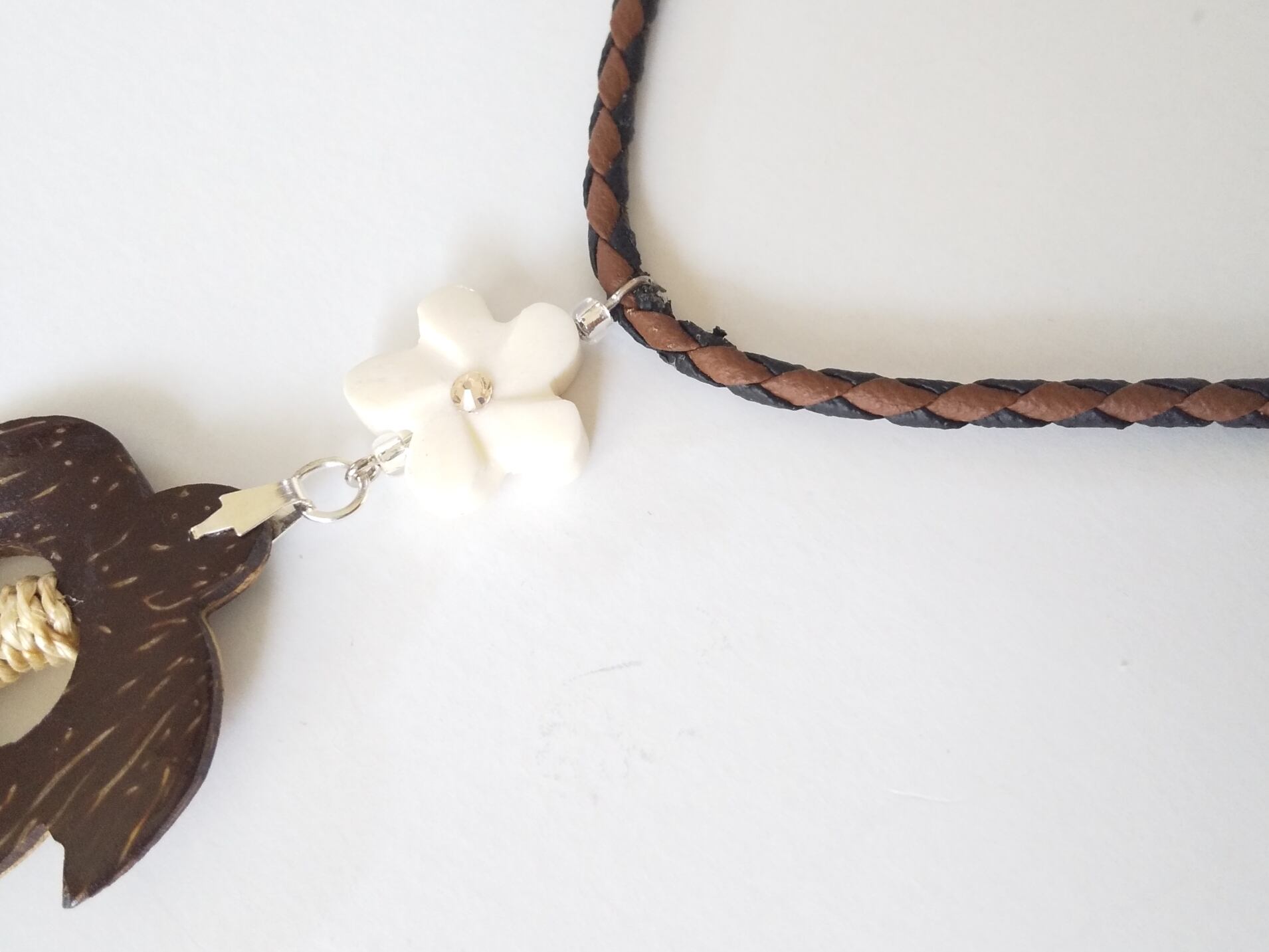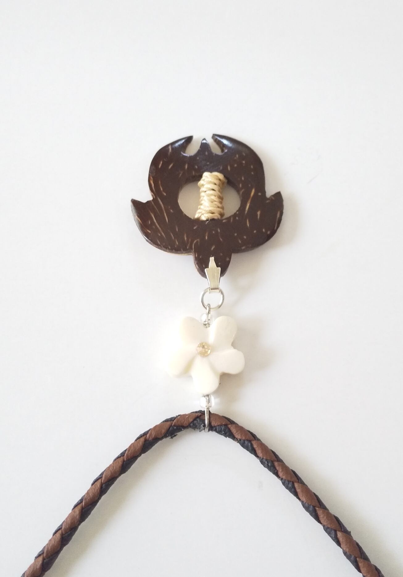 ハワイアンネックレス 椰子ウッド ホヌ& ボーンプルメリア U-356