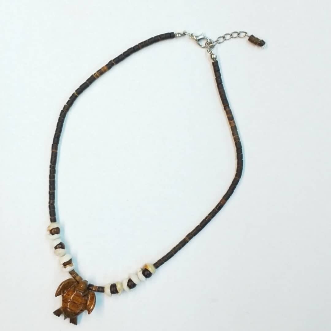 ハワイアンネックレス 天然コアウッド ホヌ&シェル U-361