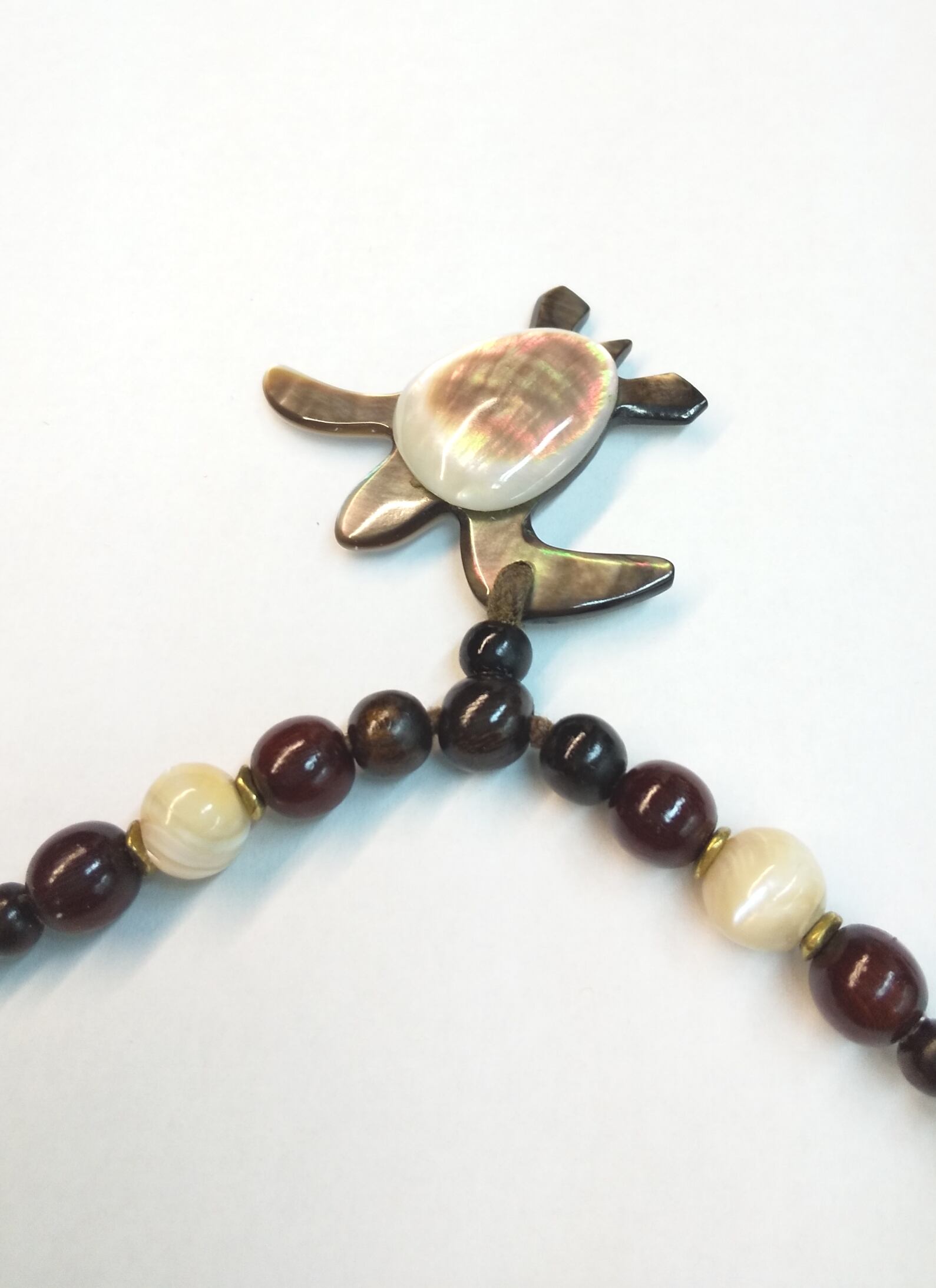 ハワイアンネックレス 天然シェル ホヌ&合成革紐 メンズサイズ U-364