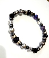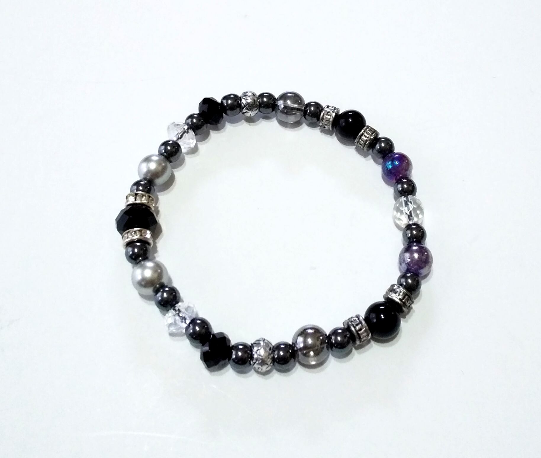 メンズ ストーンブレス ブラックスピネル& シルバークォーツ M-224