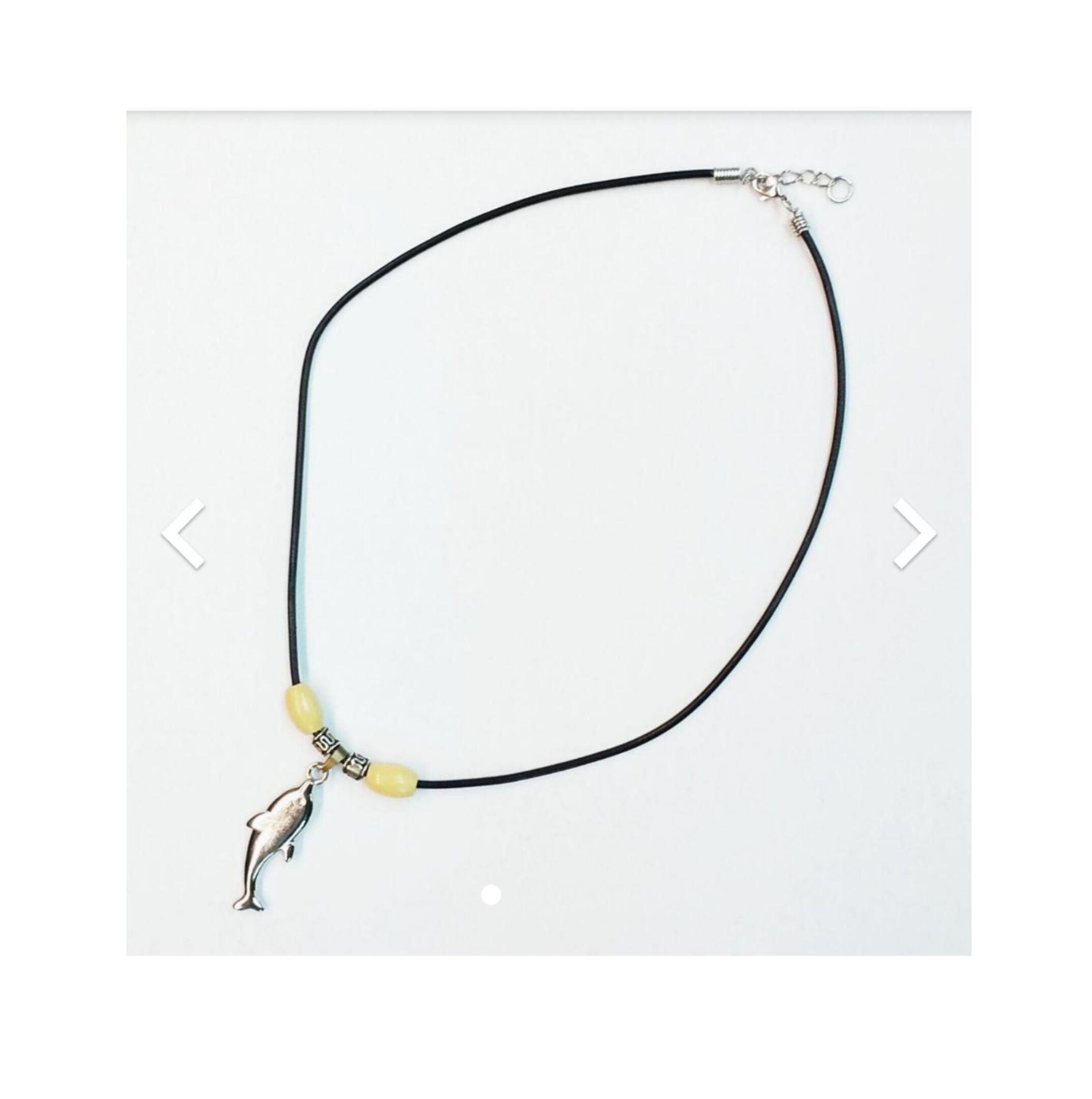 ハワイアンネックレス シルバードルフィン& ブラックラバー紐 U-241