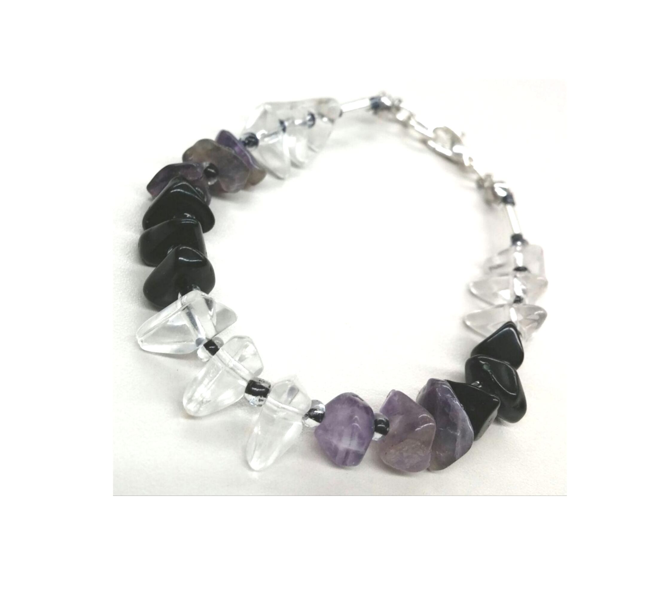 天然石ブレス、 アメジスト & ブラックストーン、 クリア サザ M-226