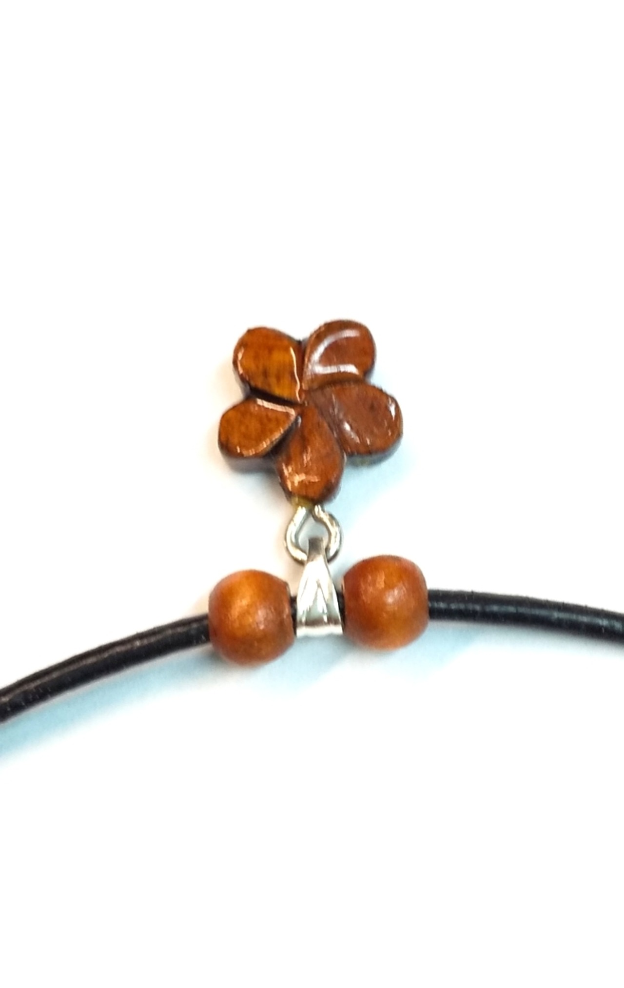 ハワイアンネックレス ハワイウッド プルメリア &本革黒紐 U-381