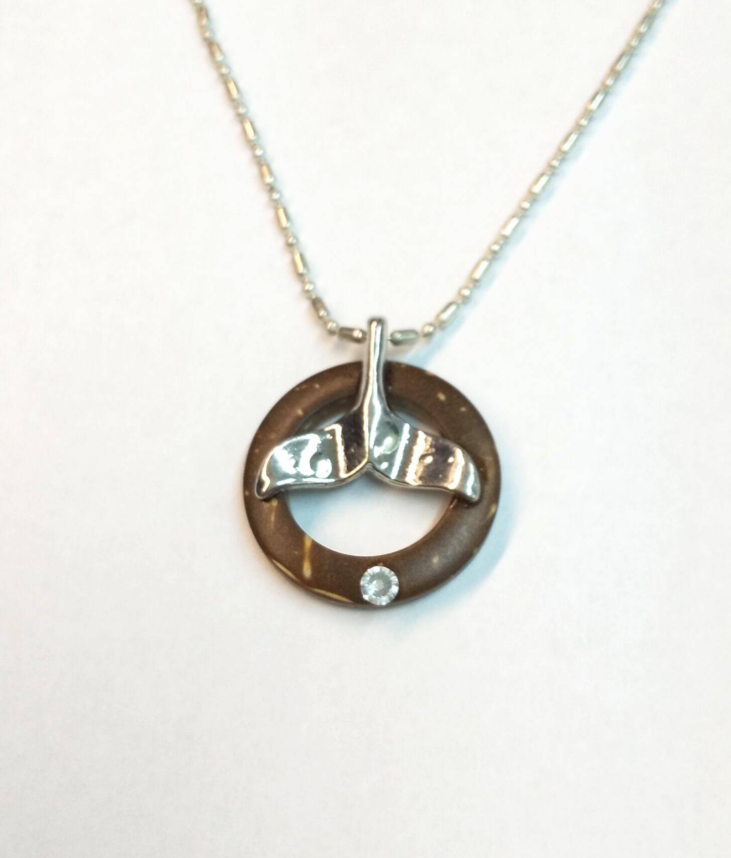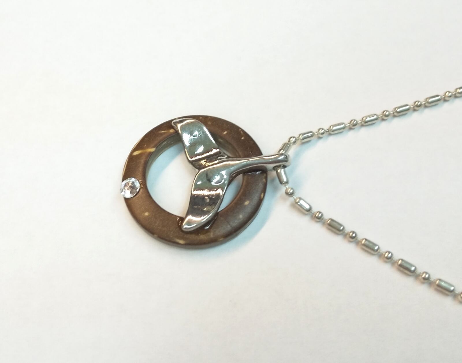 ハワイアンネックレス 天然椰子ウッド& シルバードルフィンテール U-383