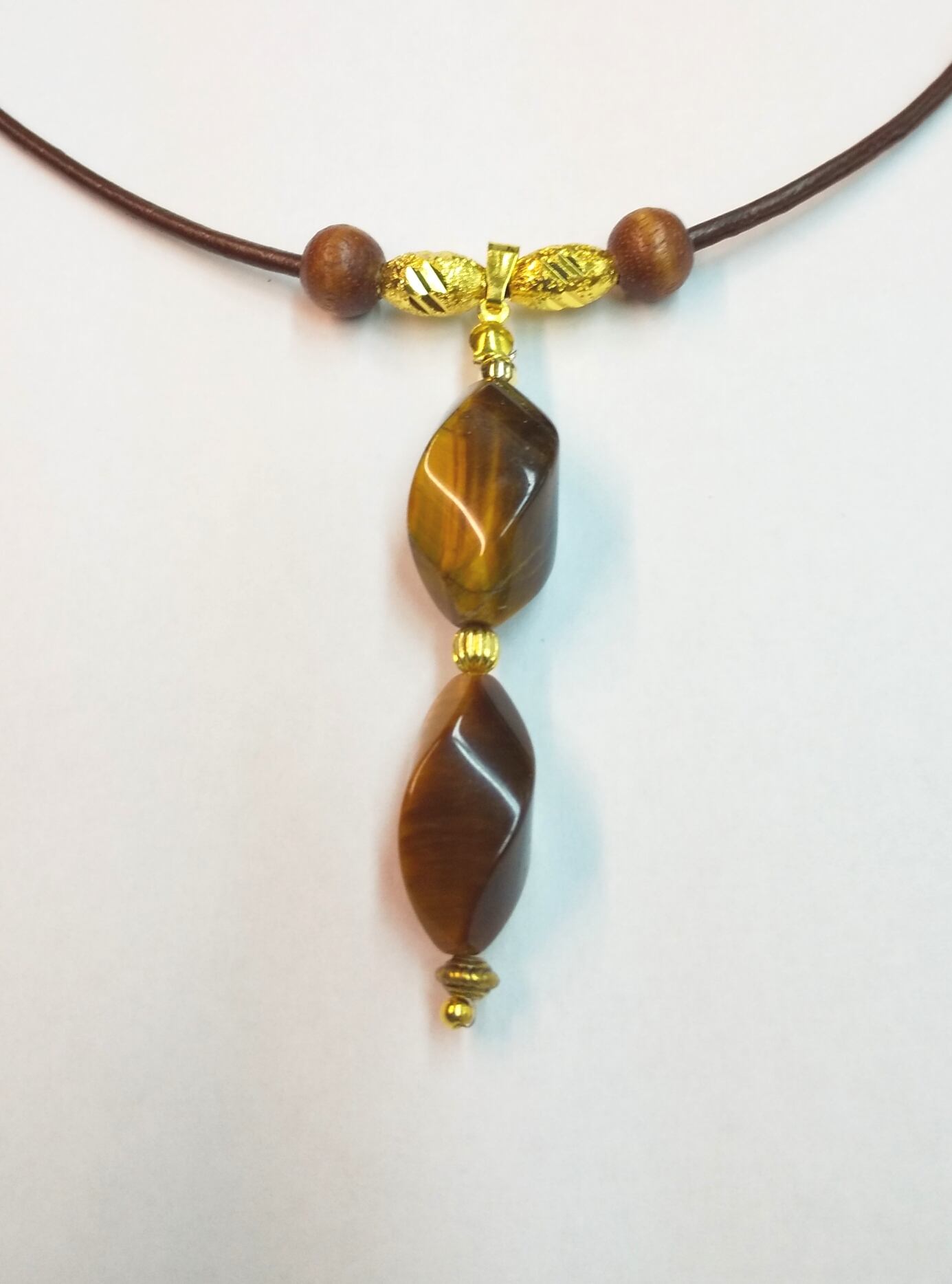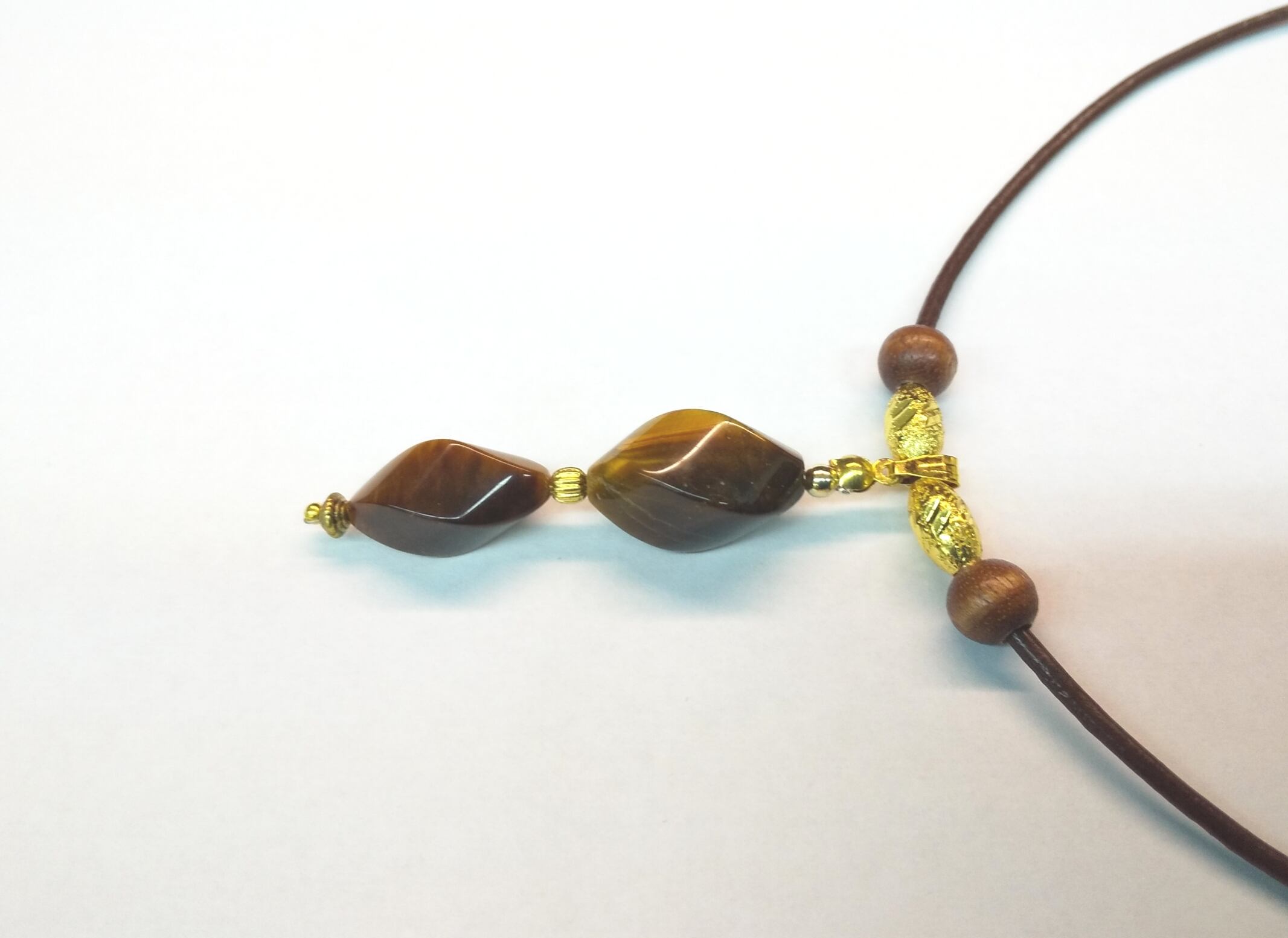 天然石 タイガーアイ 2連ツイスト ブラウンカラー 本革紐 S-702