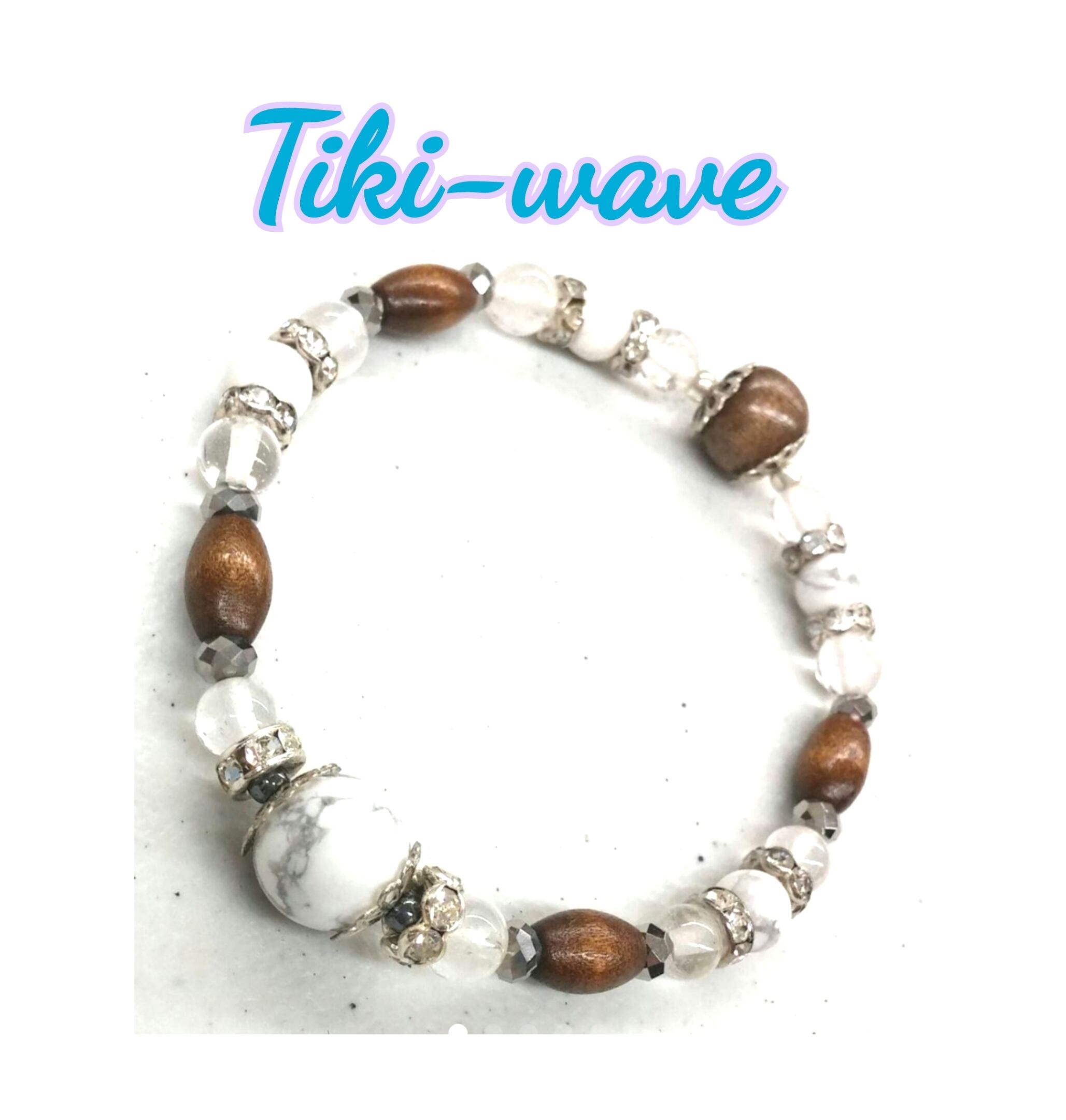 メンズブレス ホワイトターコイズ& 天然ウッド M-118