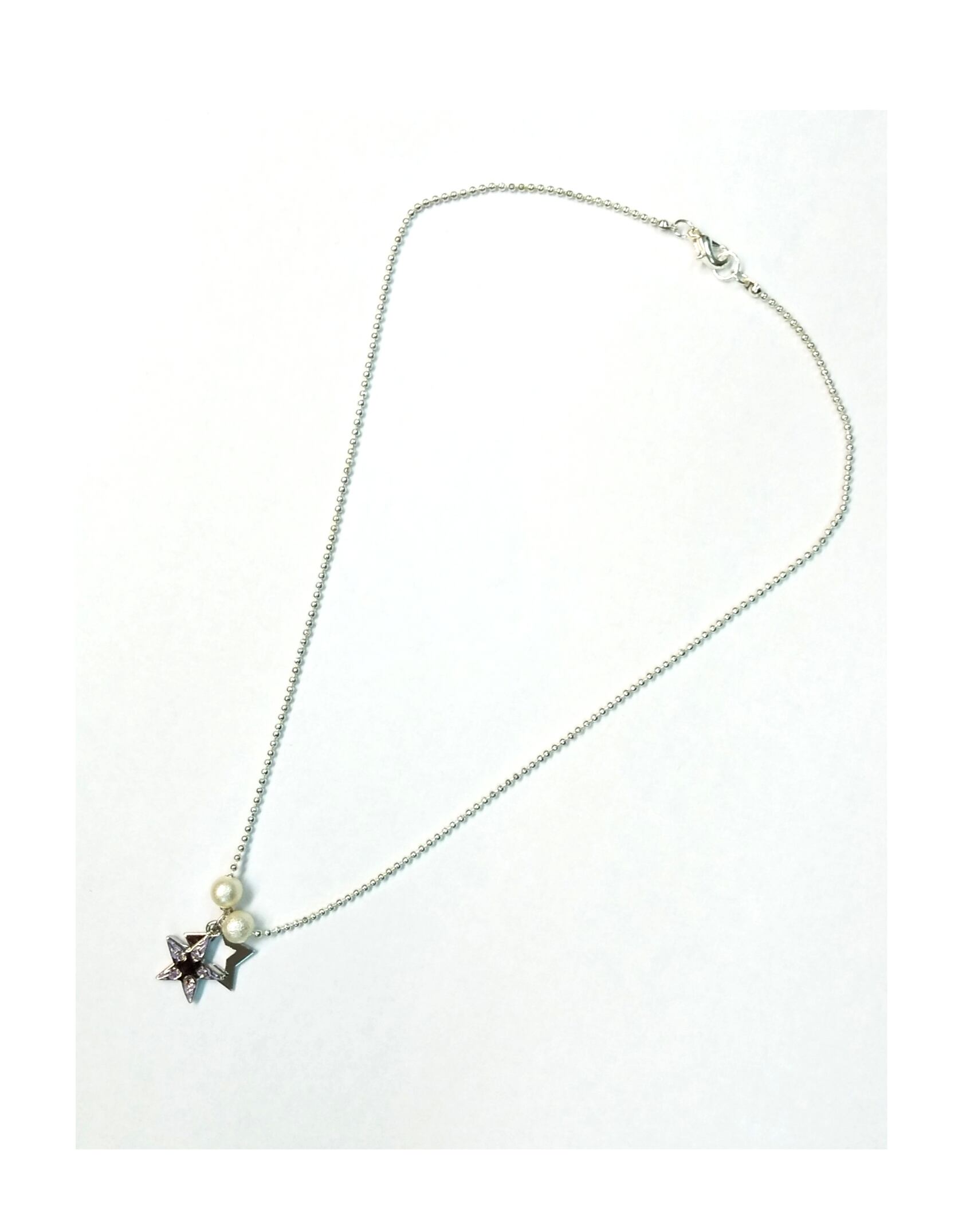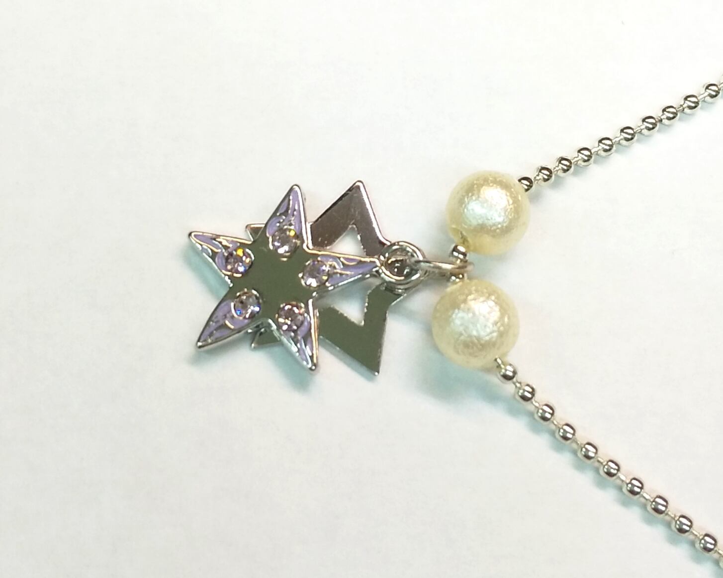 レディースネックレス シルバー2連スター パープルCZ&パール Y-101