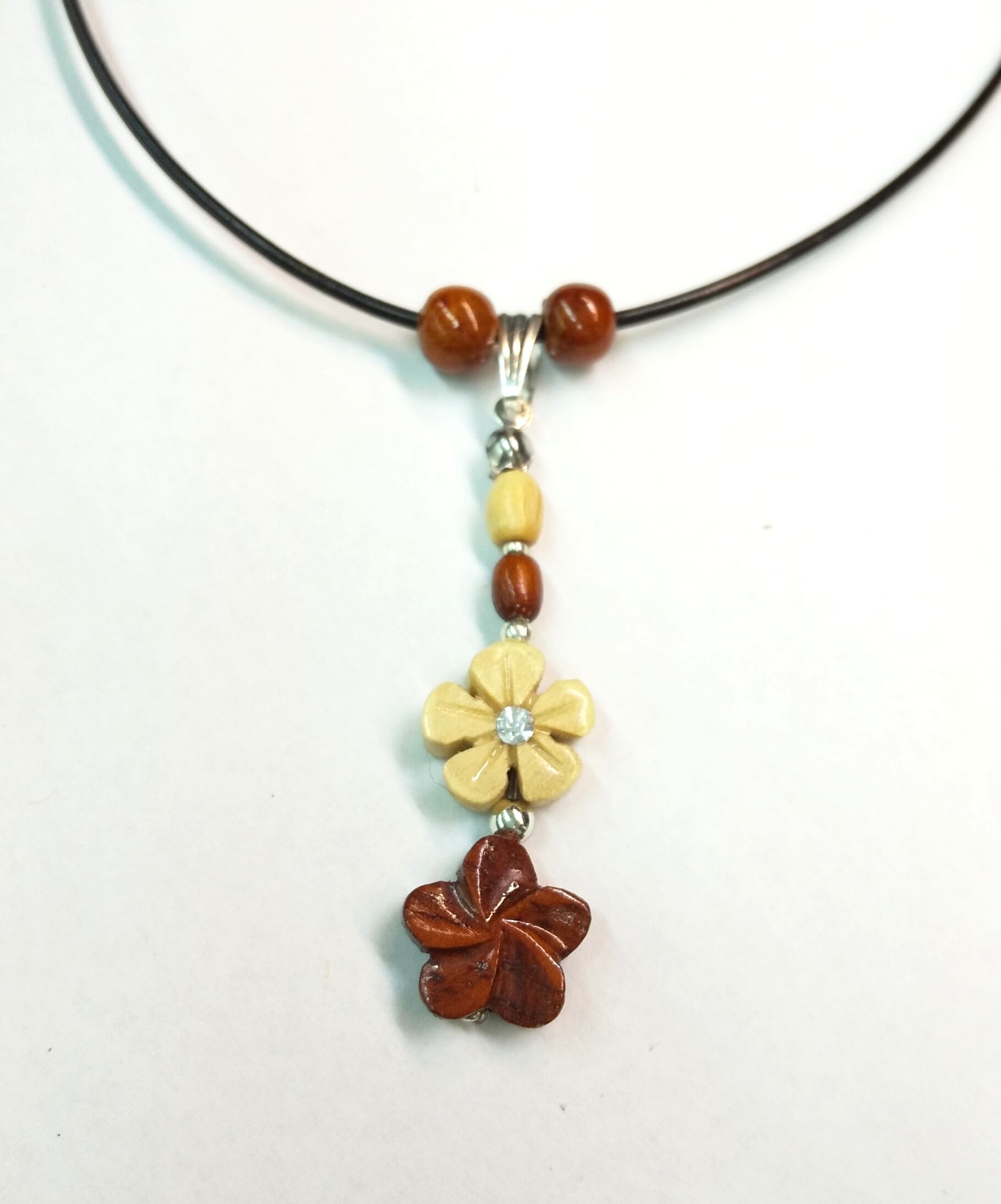 ハワイアンネックレス ハワイウッド 2連プルメリア &本革紐 U-400