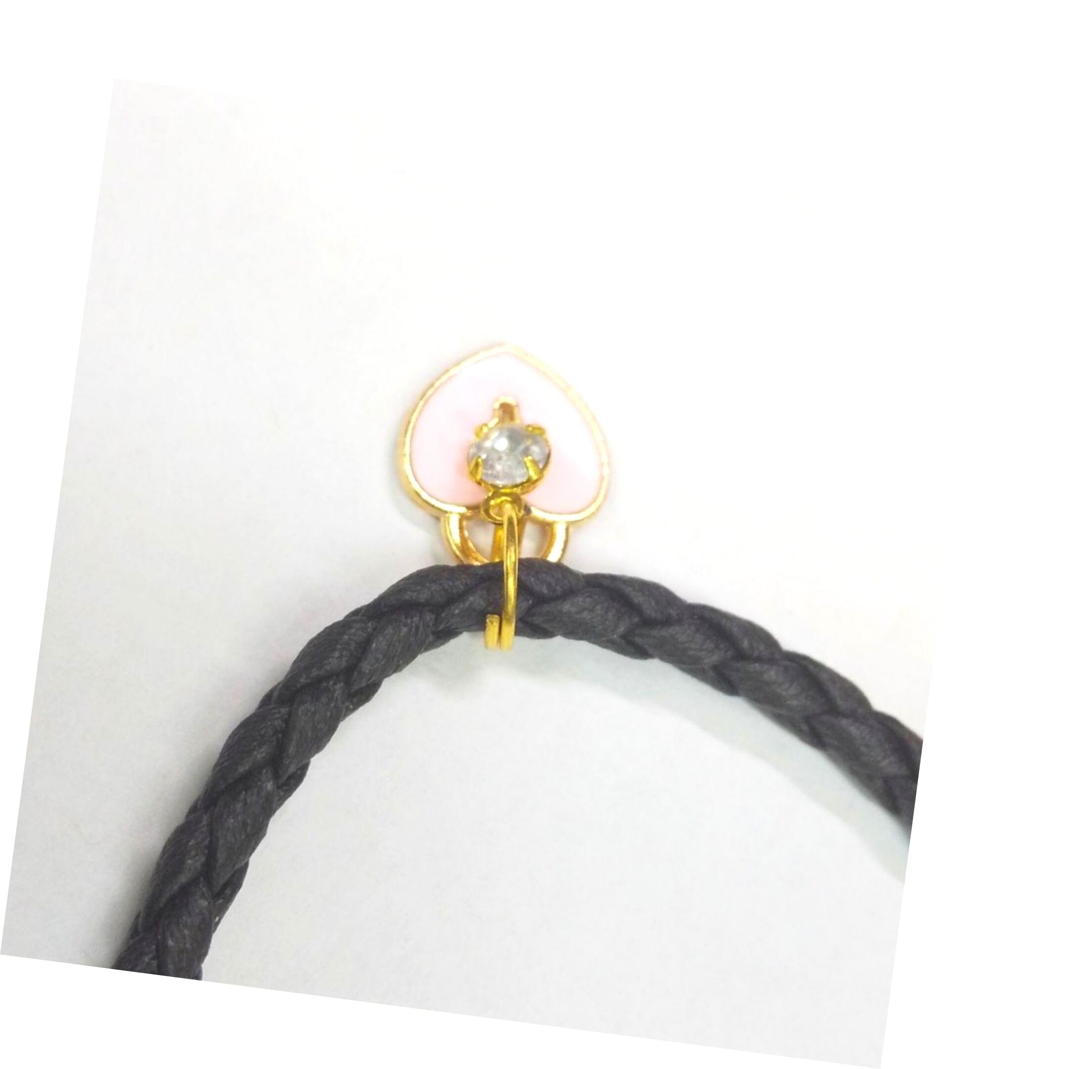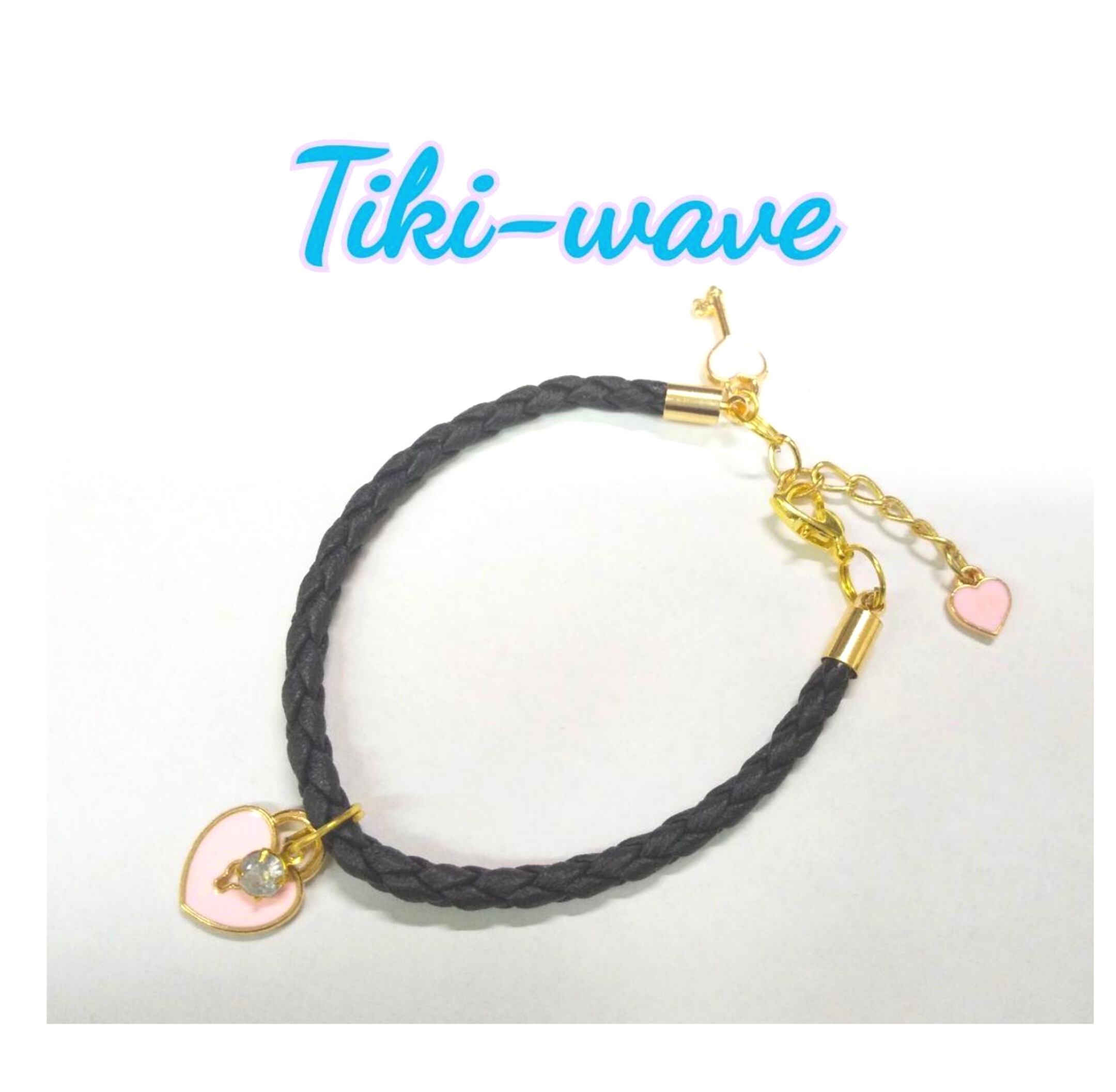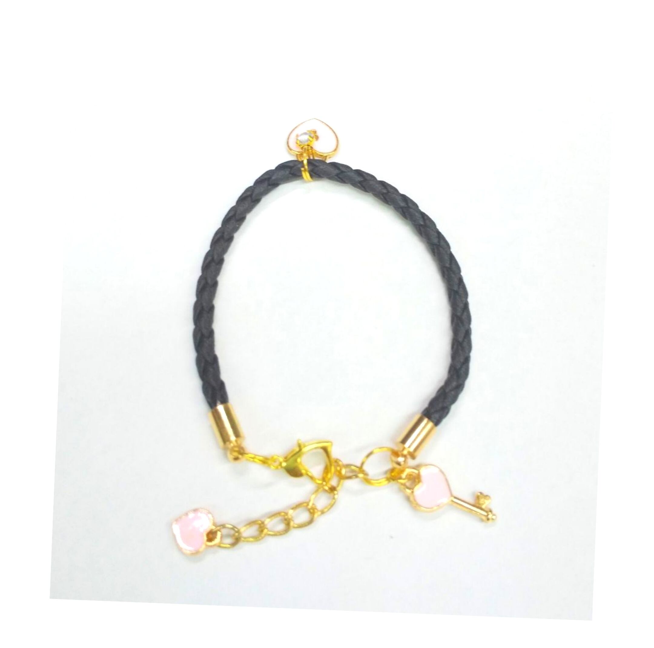 レディースブレス ピンクカラー ハート&KEY ブラックカラー紐 M-503