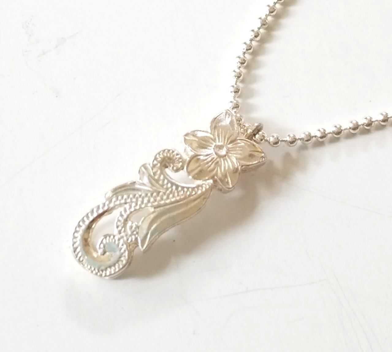 ハワイアンネックレス シルバー925 プルメリア& ウェーブ U-406