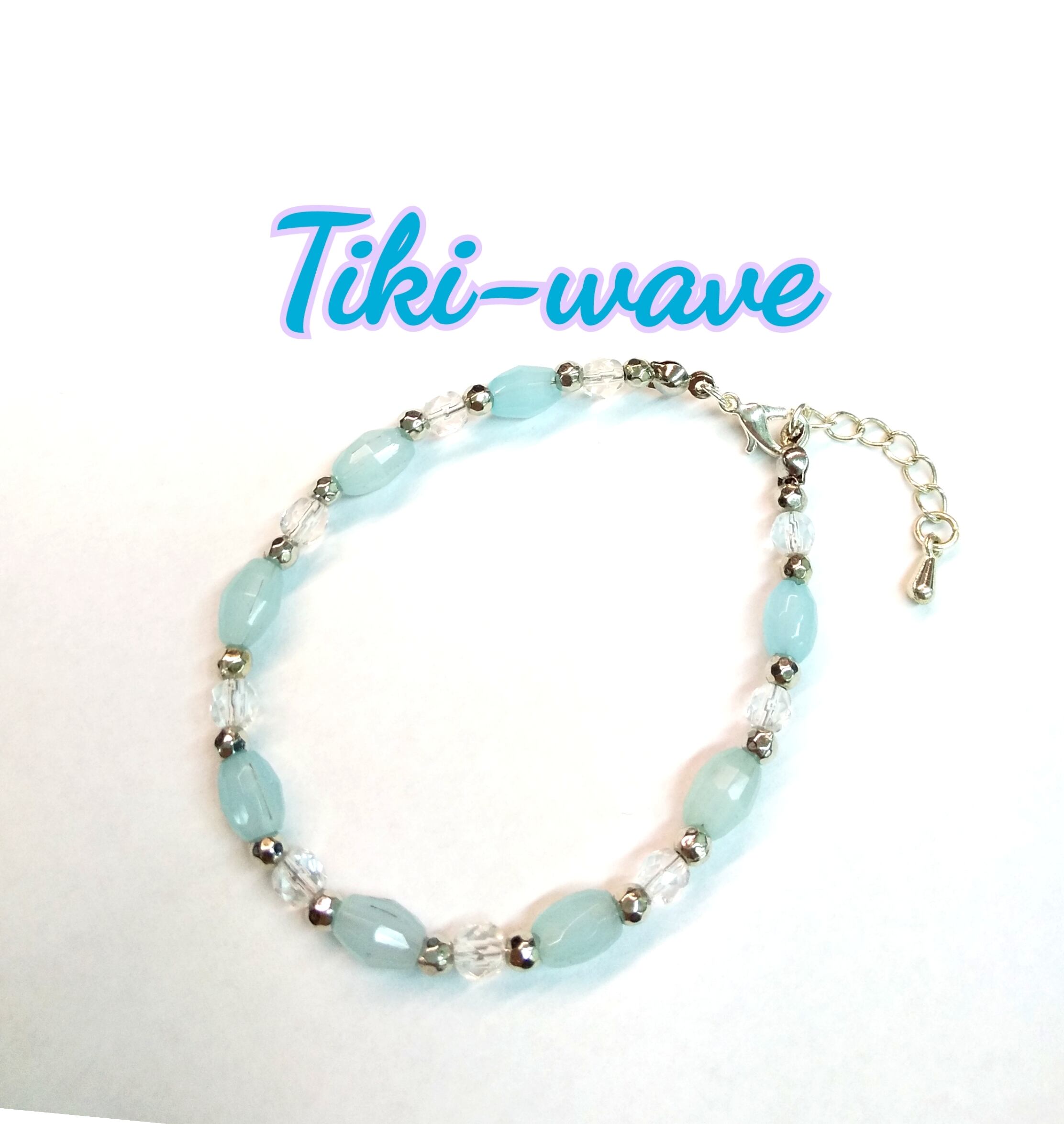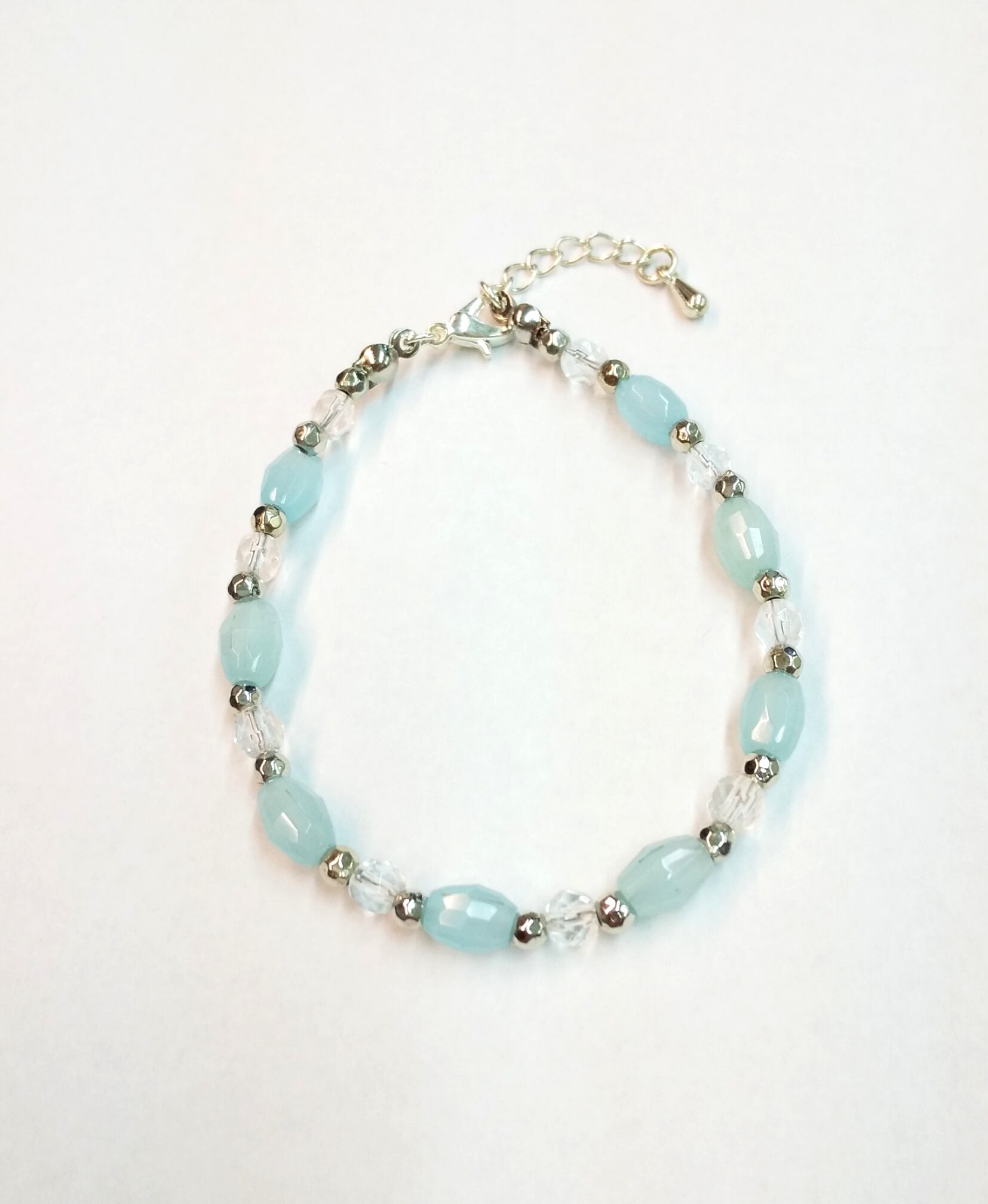 ストーンブレス アクアマリン& クリアカラーカットビーズ P-206