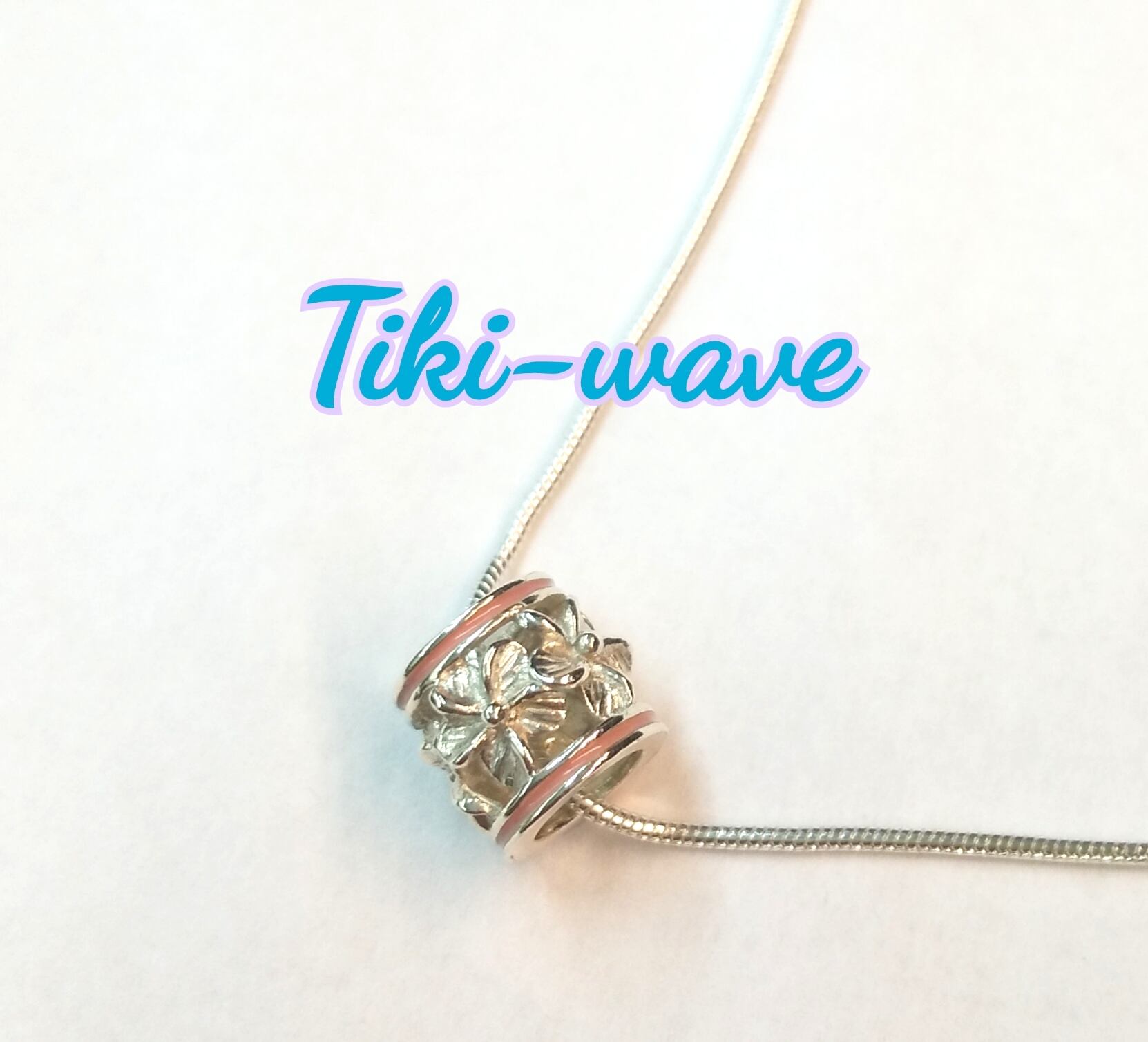 ハワイアンネックレス シルバー925 プルメリア 筒型 ピンク U-424