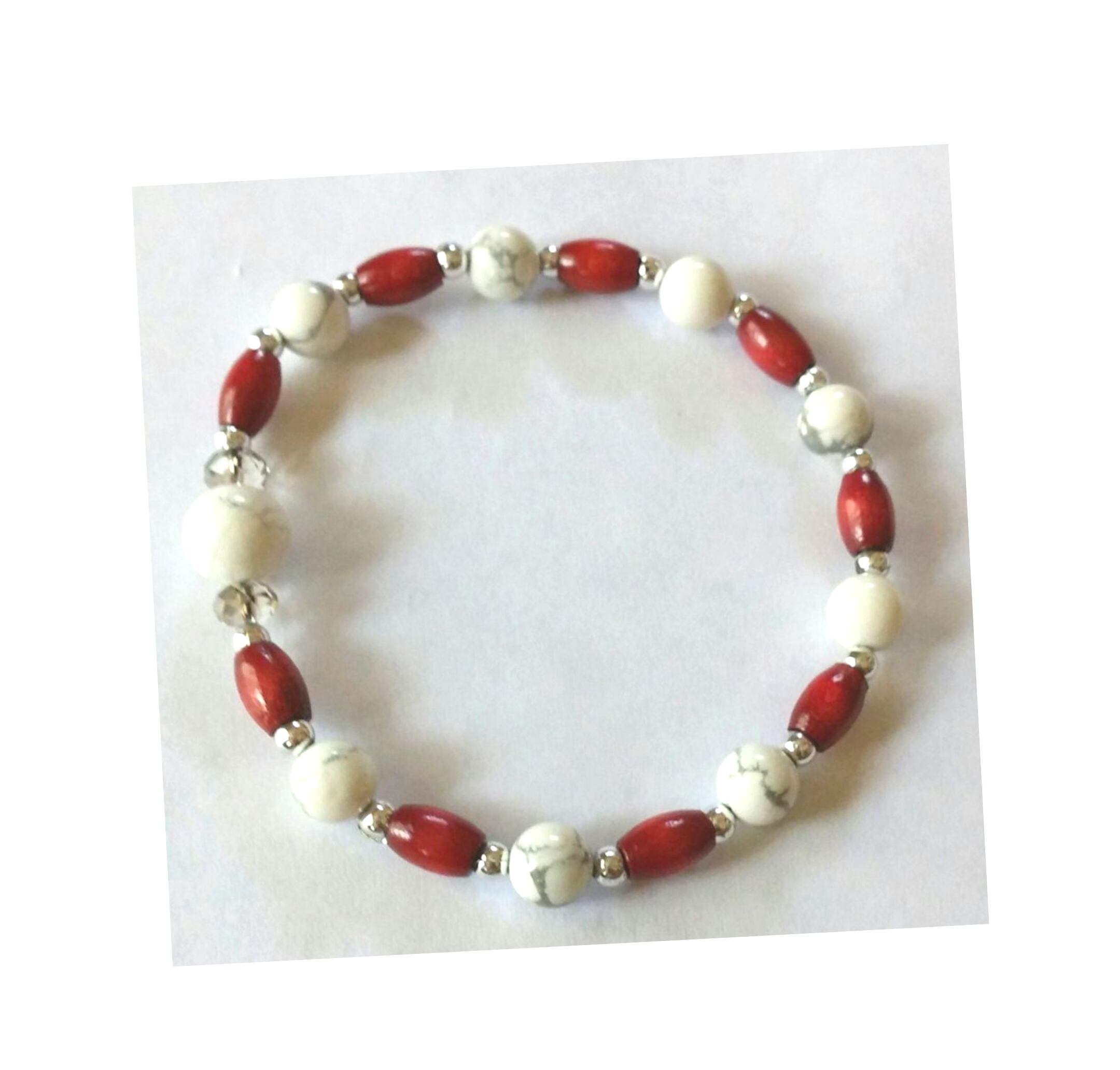 メンズストーンブレス ワインウッド& ホワイトターコイズ M -121