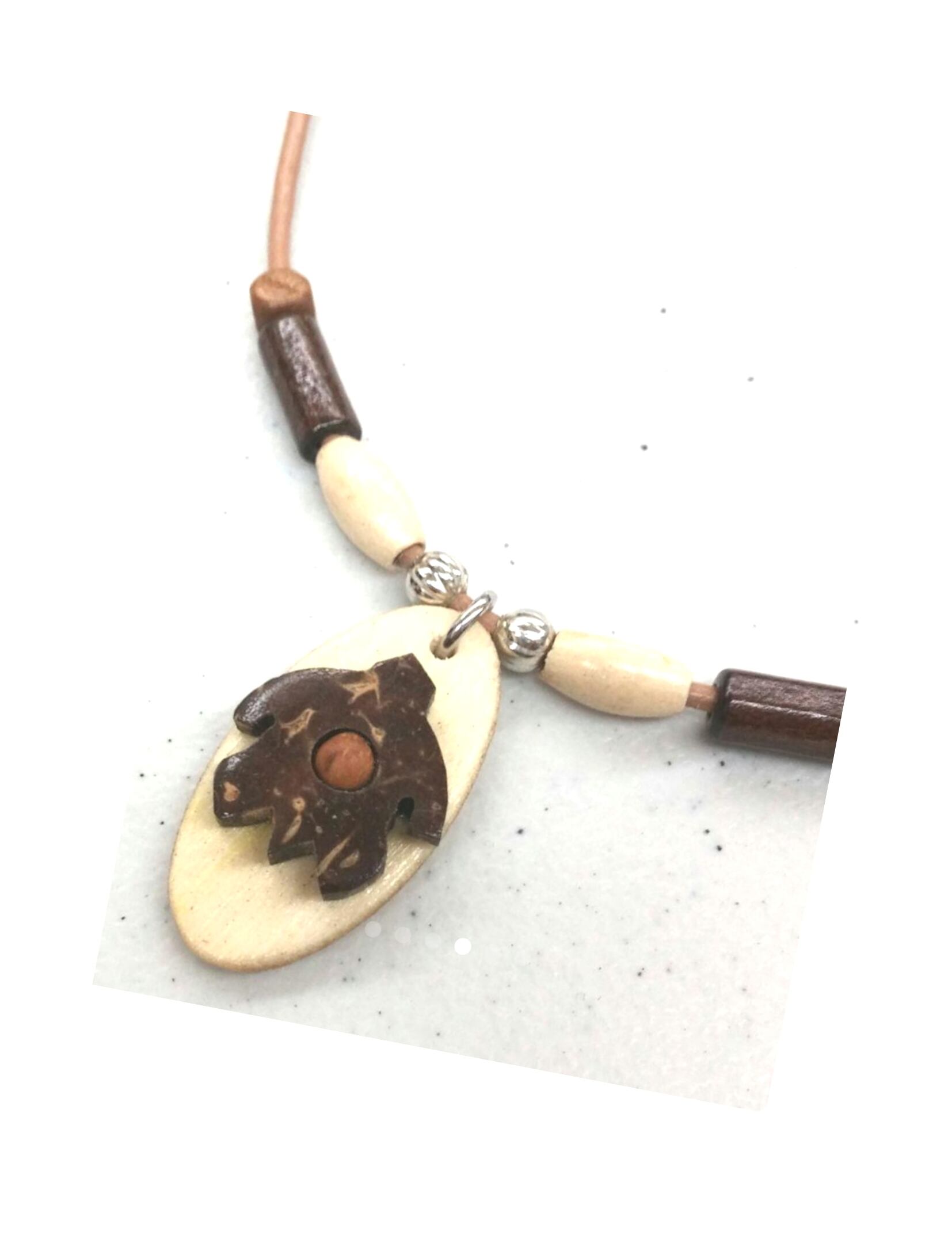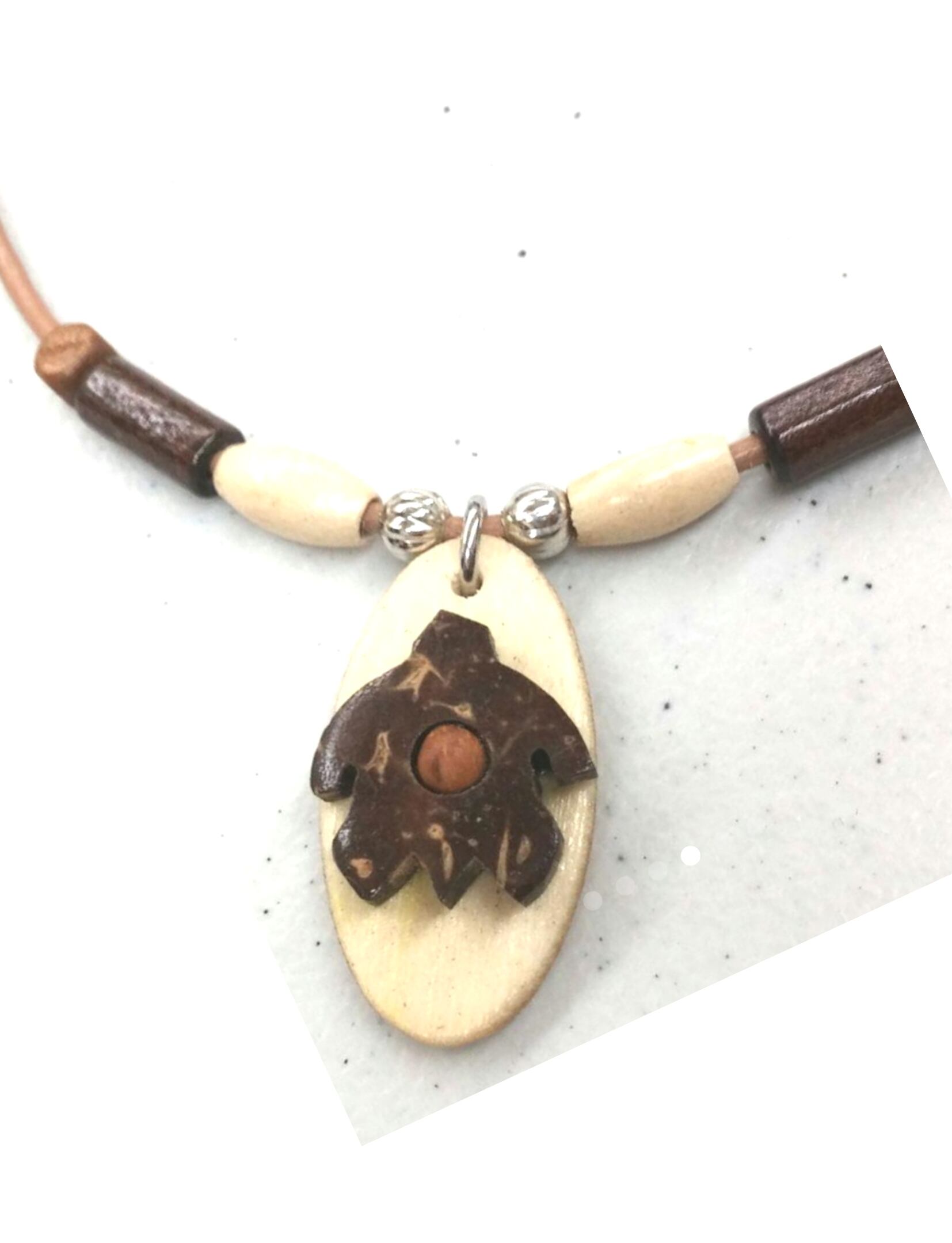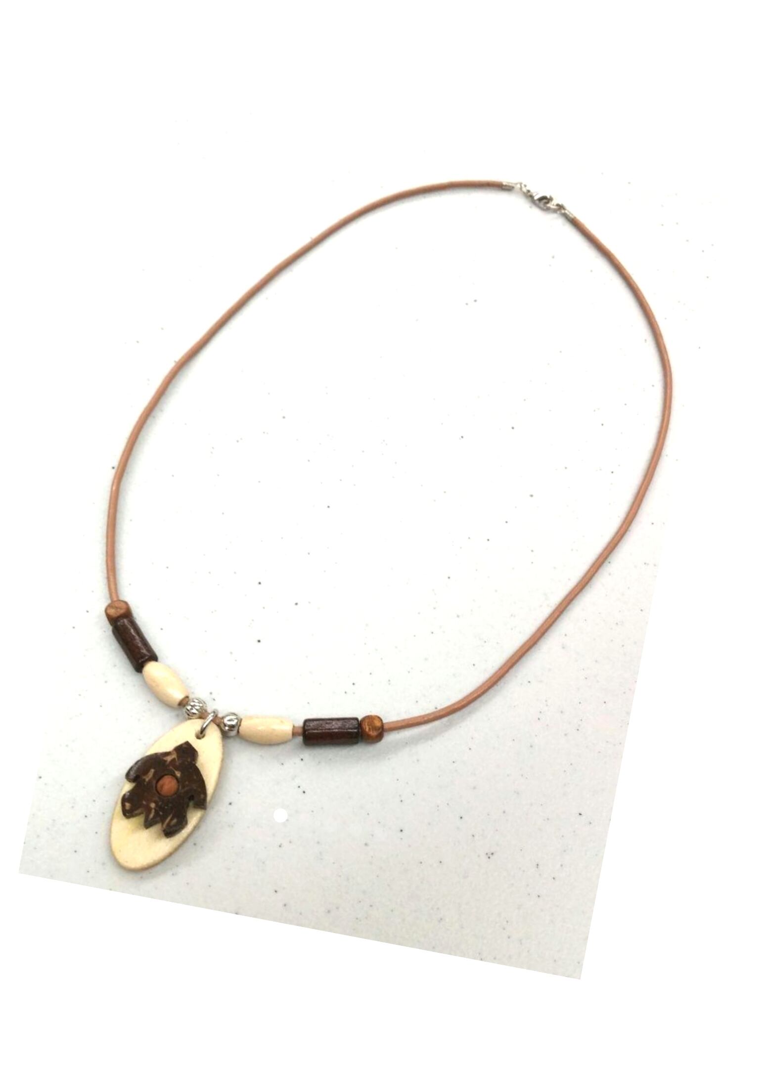 ハワイアンネックレス 椰子ウッドホヌ& ウッドプレート Y-552