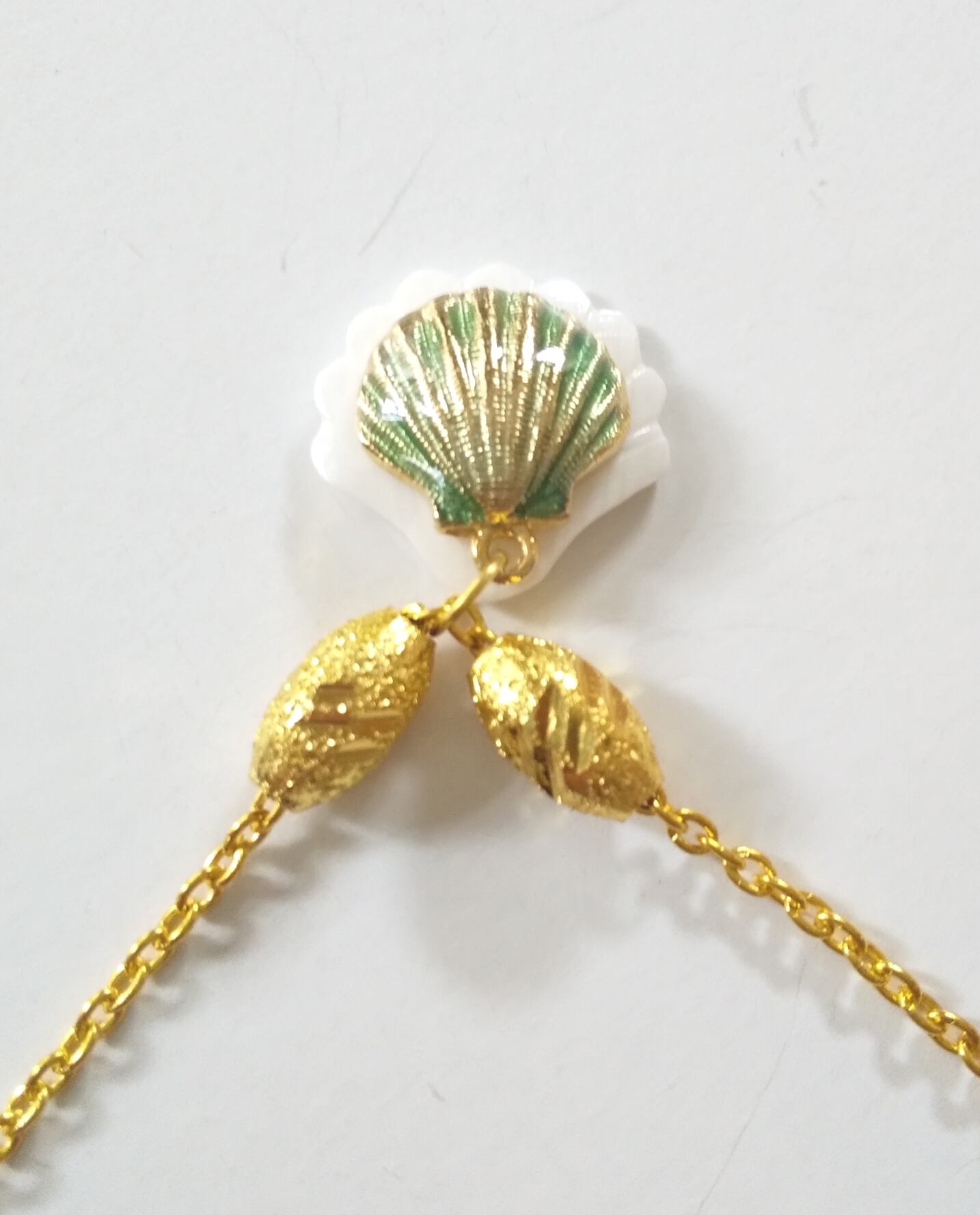 ハワイアンネックレス ホワイトシェル& ゴールド、ミント S-301