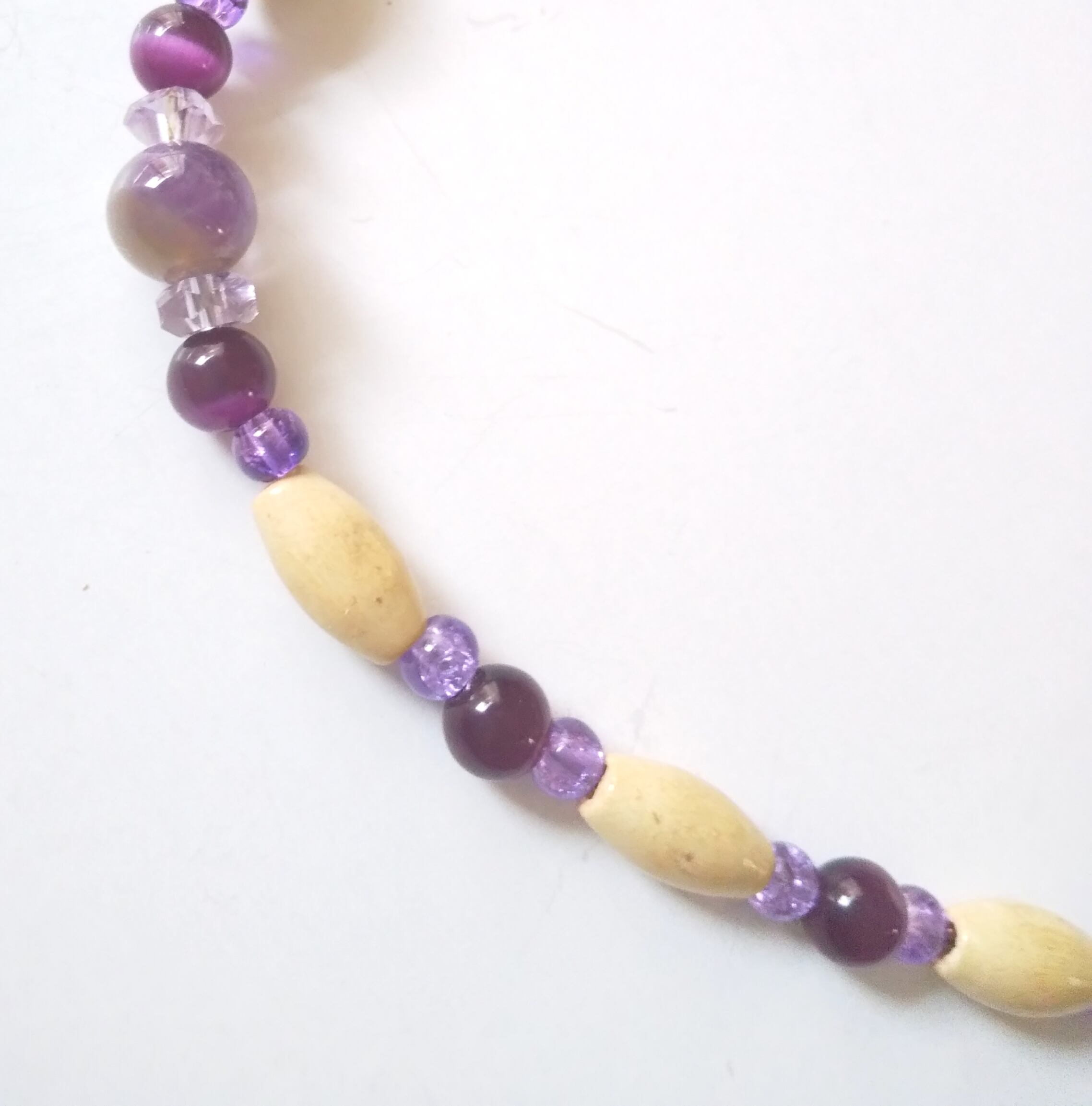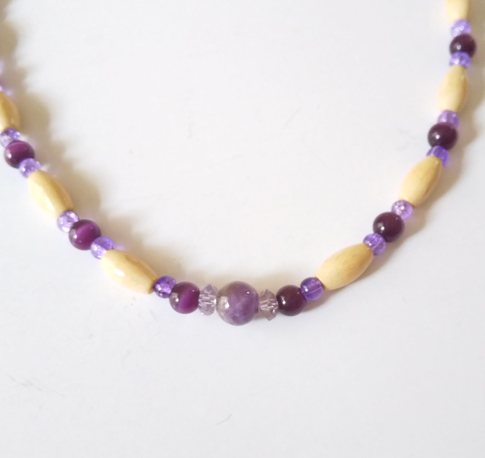 天然石ネックレス アメジスト&ガーネット ウッドビーズ T-700