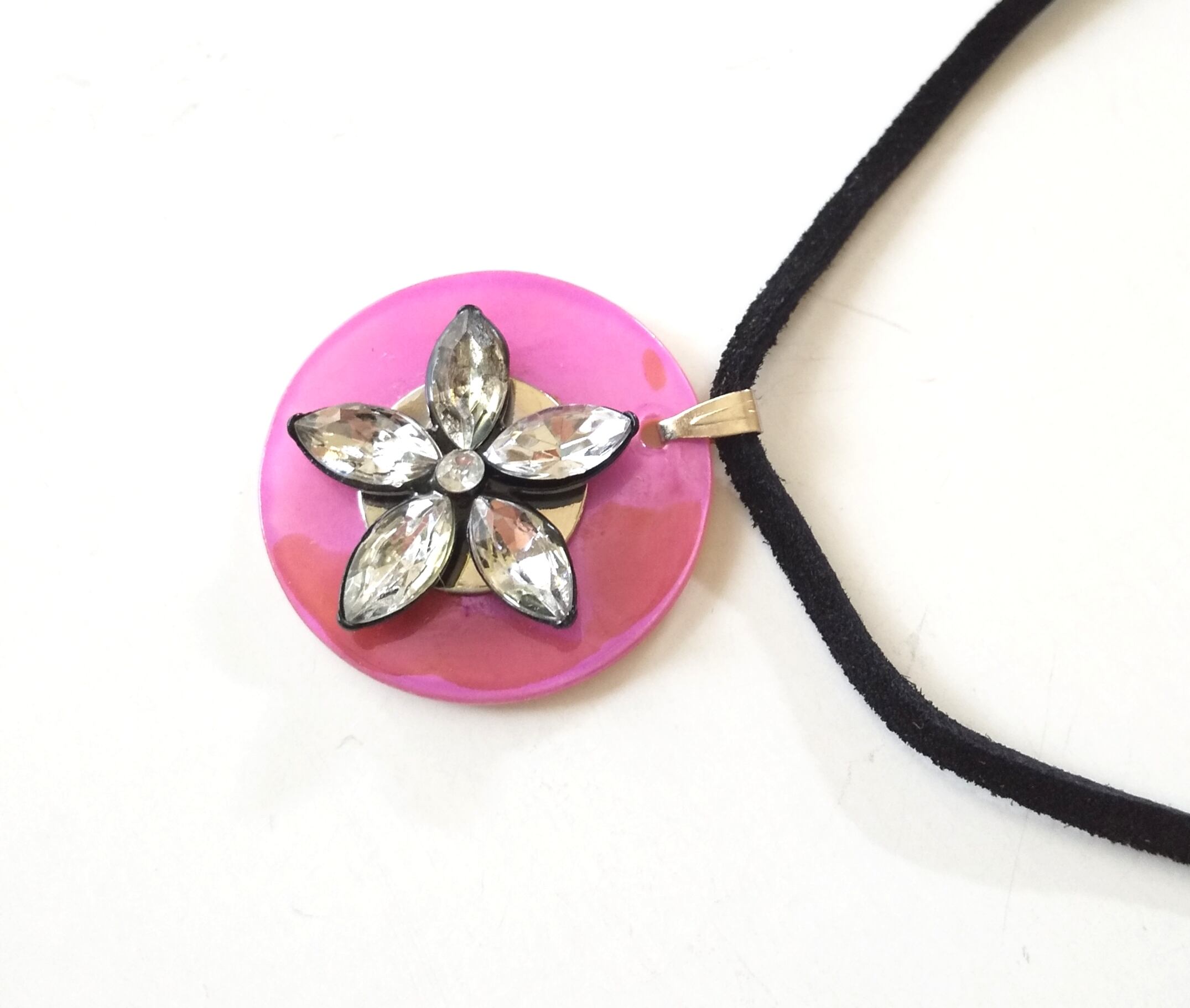 ハワイアンネックレス パープルカラーシェル& CZプルメリア P-603