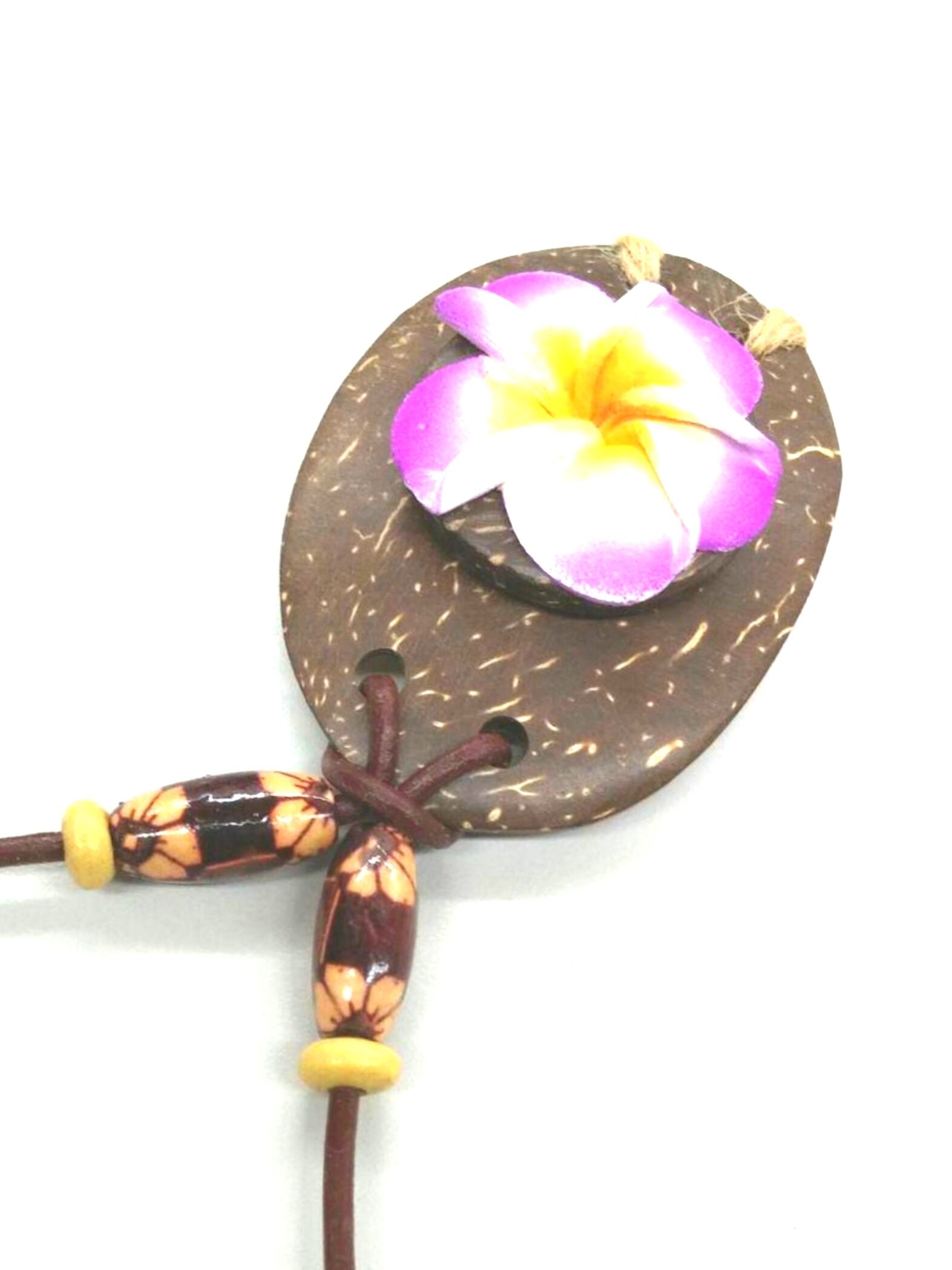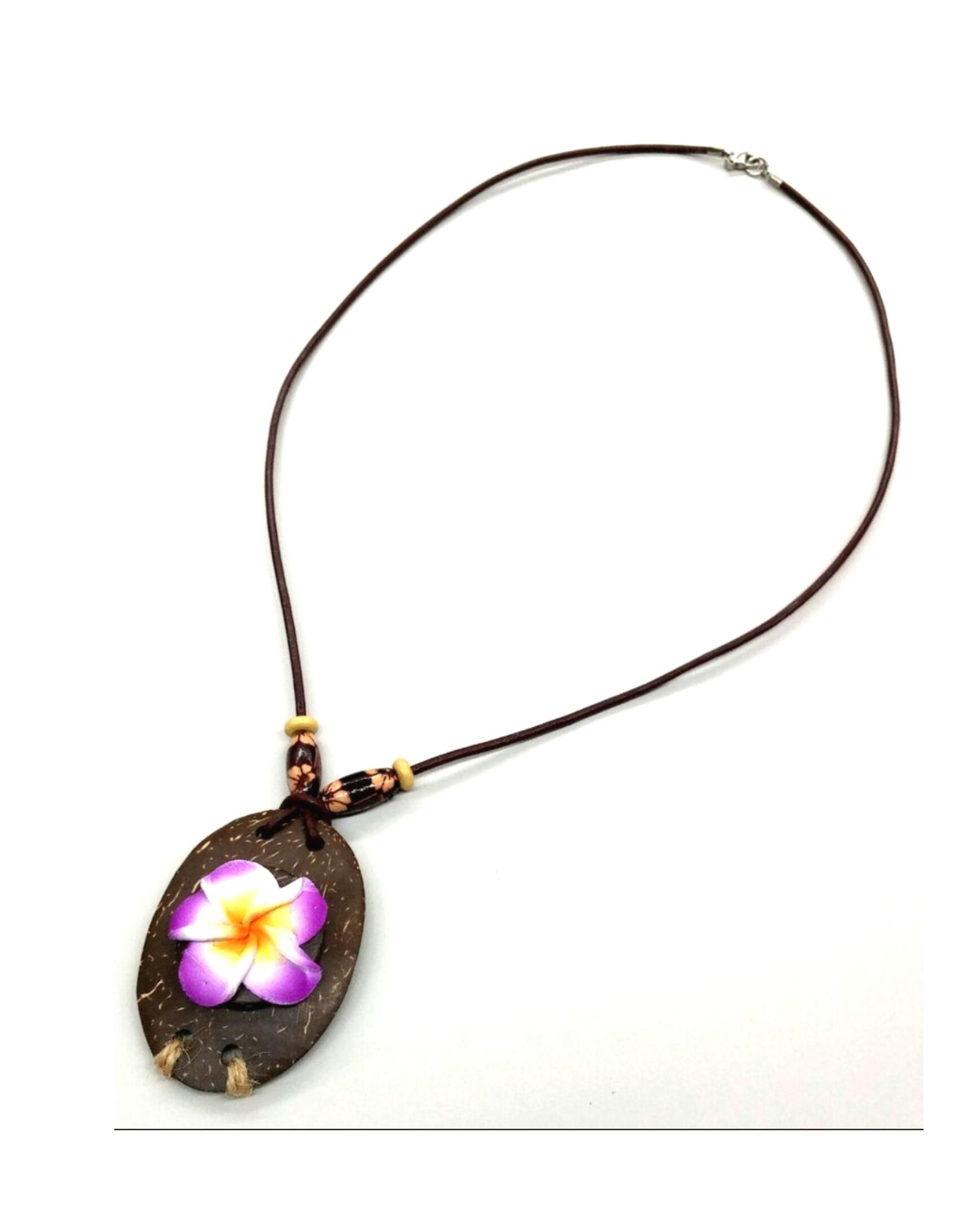 ハワイアンネックレス 椰子ウッド オーバル& プルメリア Y-542