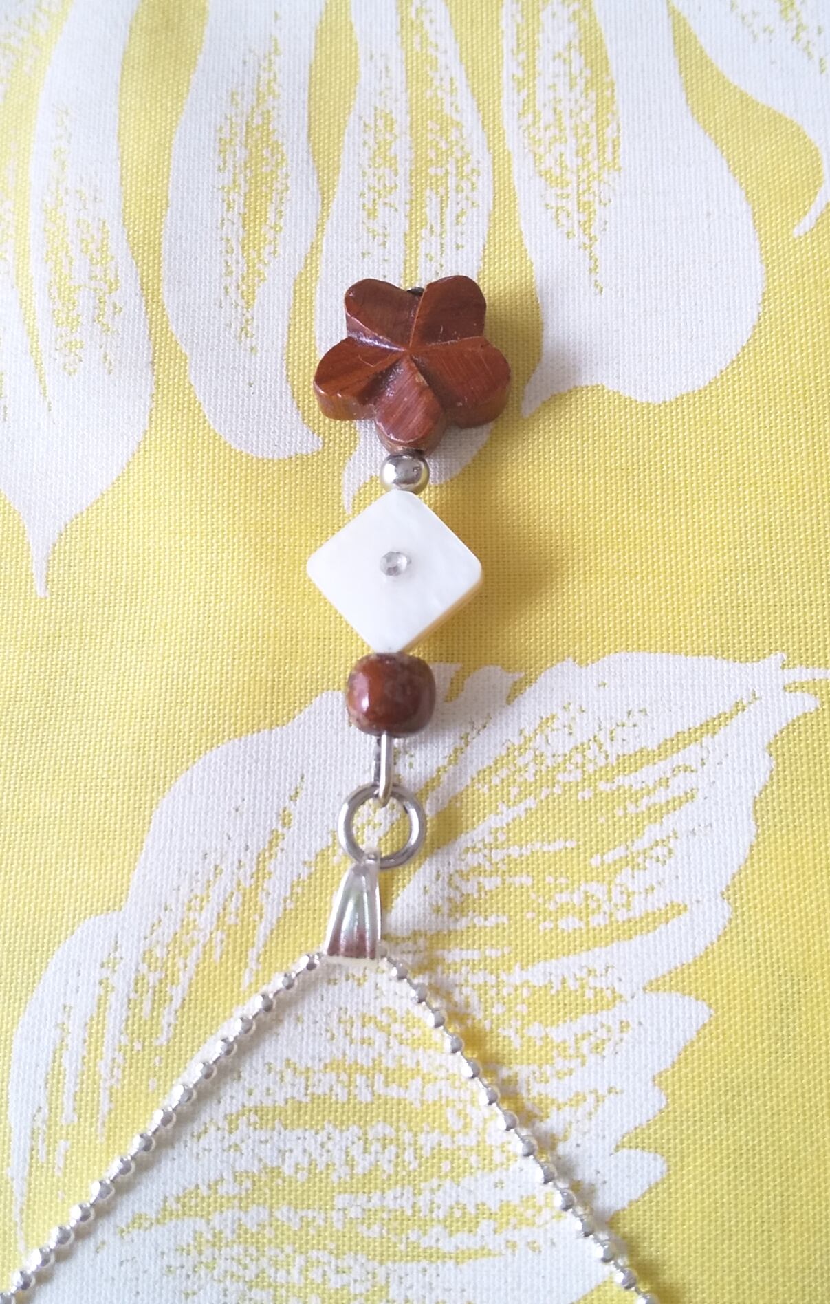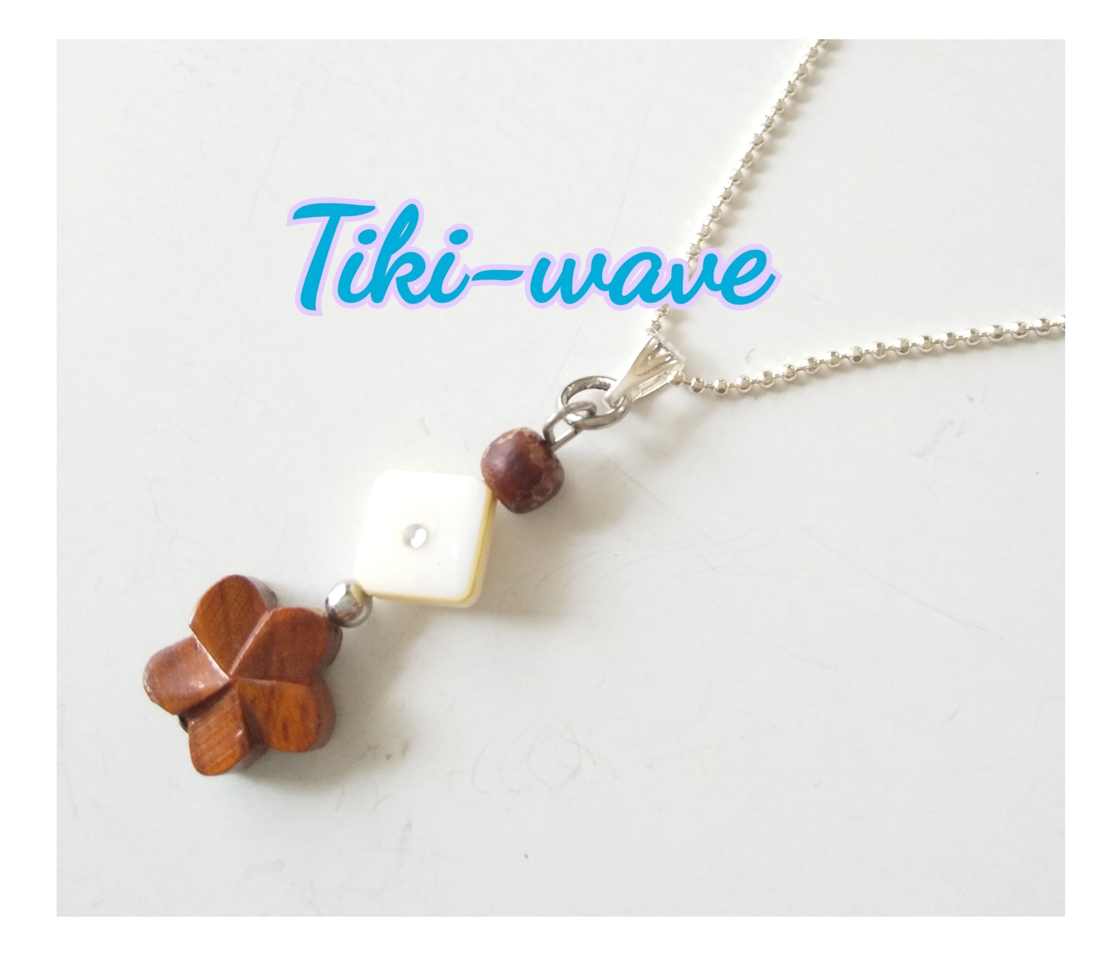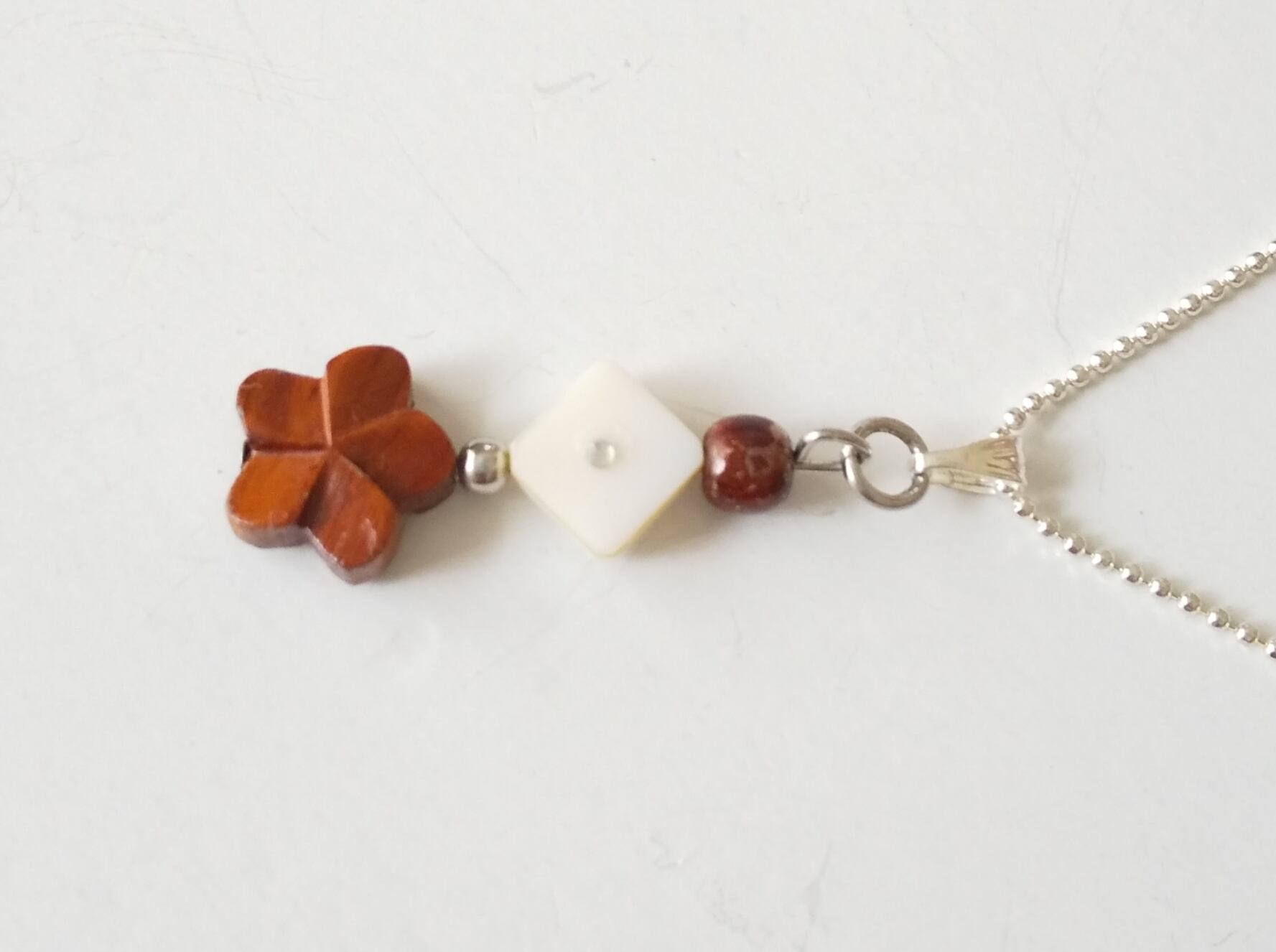 ハワイアンネックレス コアウッド プルメリア& ホワイトシェル P-604