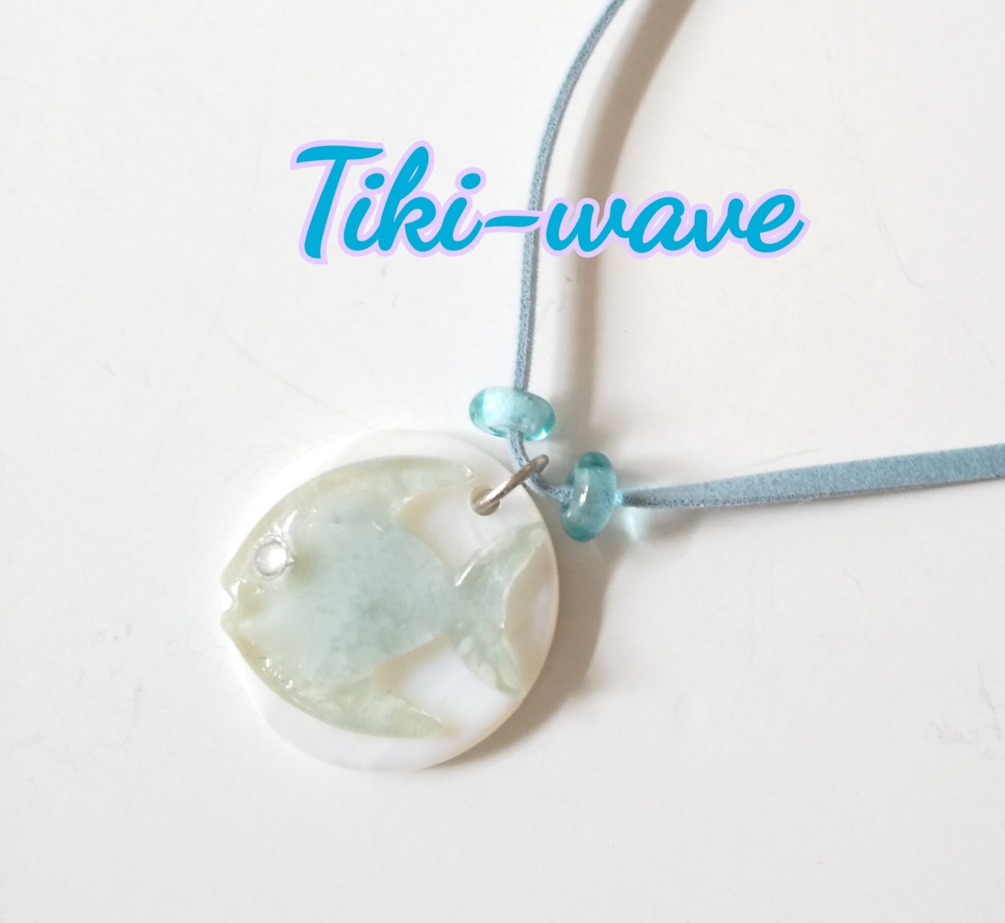 ハワイアンネックレス 天然シェル& アクアブルー熱帯魚 S-303