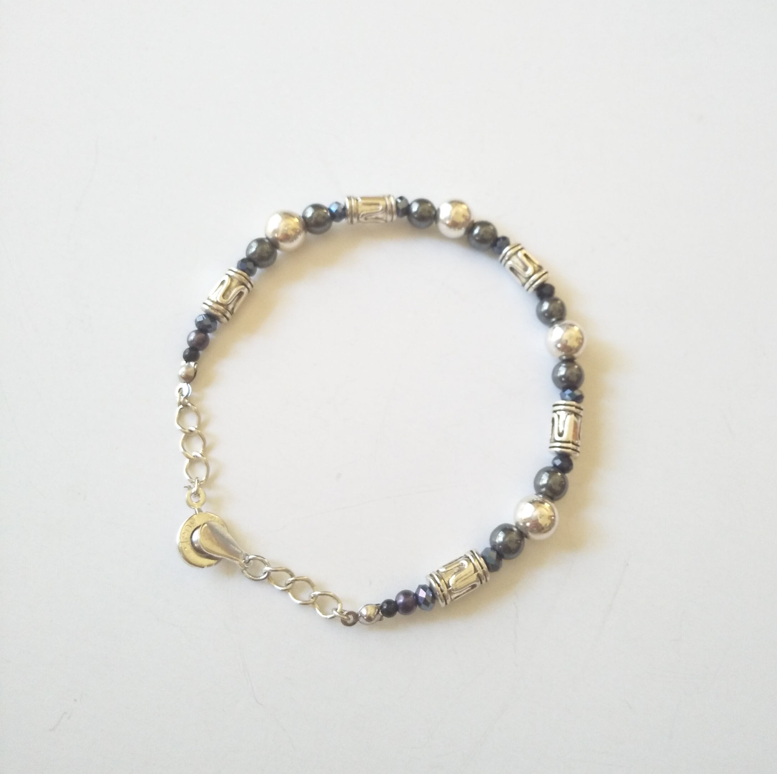 メンズスブレス ブラックスピネル ヘマタイト &シルバーボール N-102